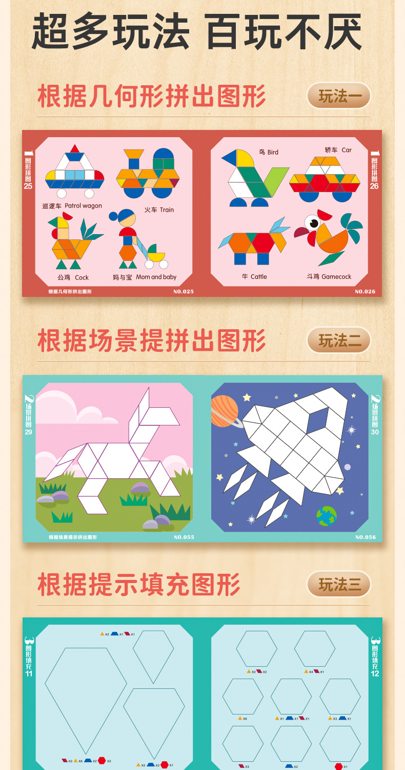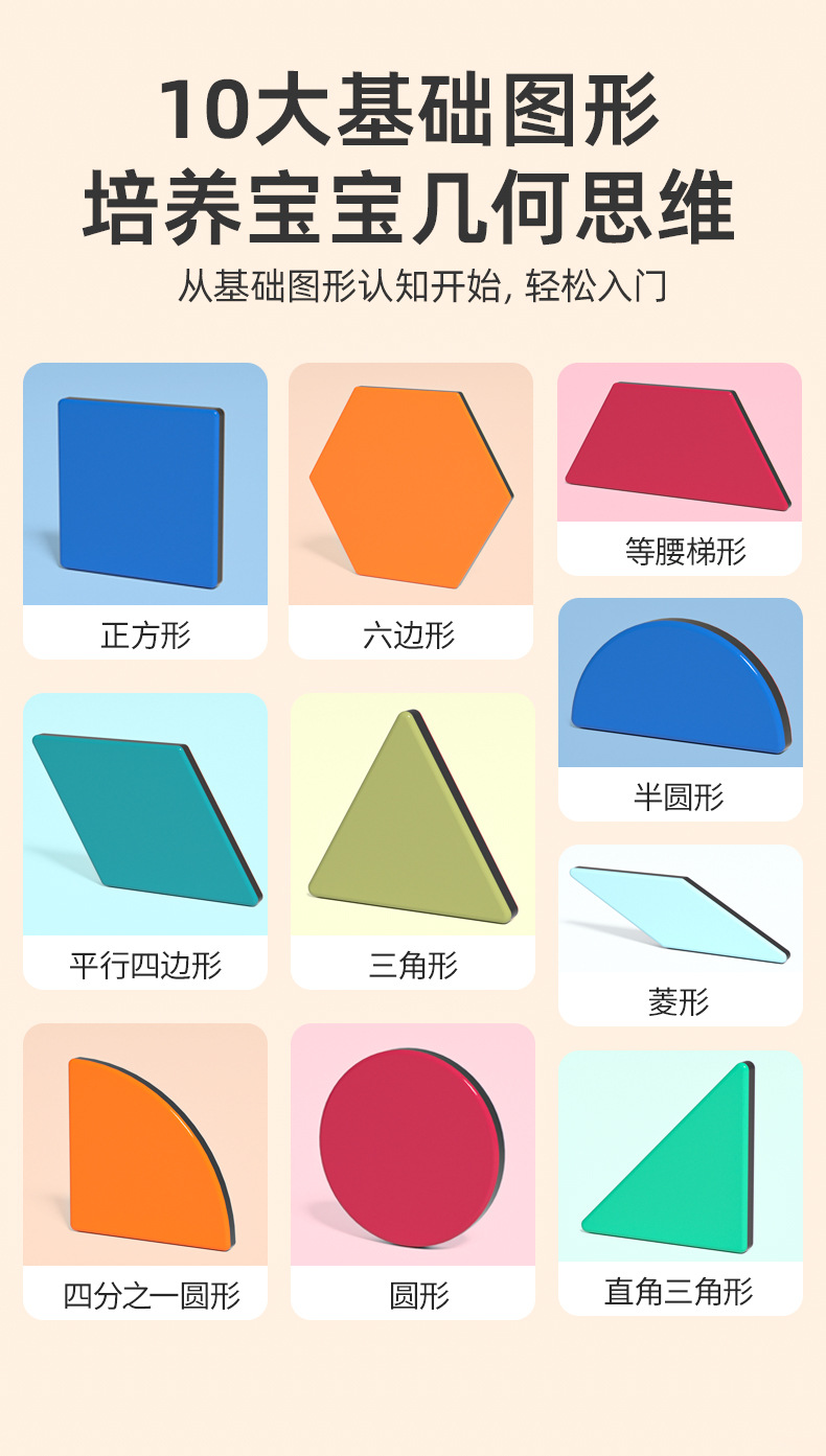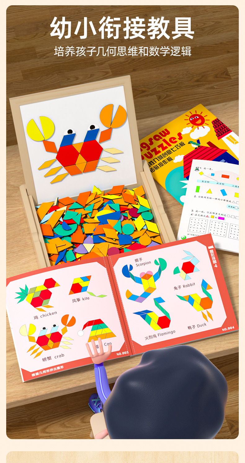 【培养动手能力和思维能力】磁力拼图七巧板几何积木幼儿儿童宝宝益智力玩具