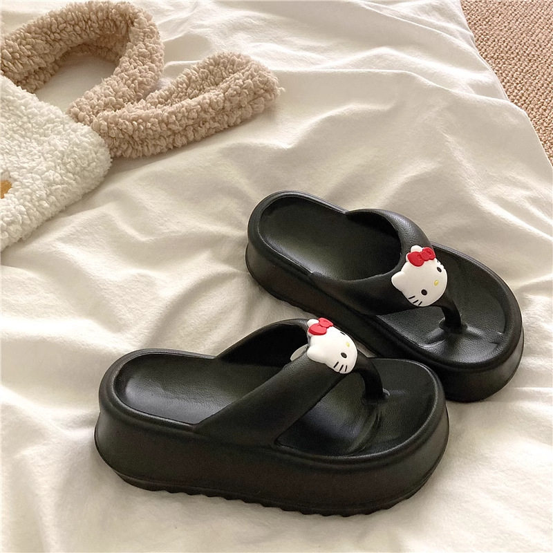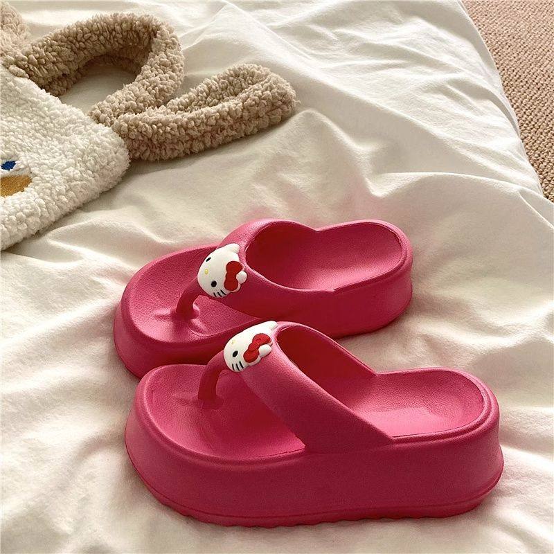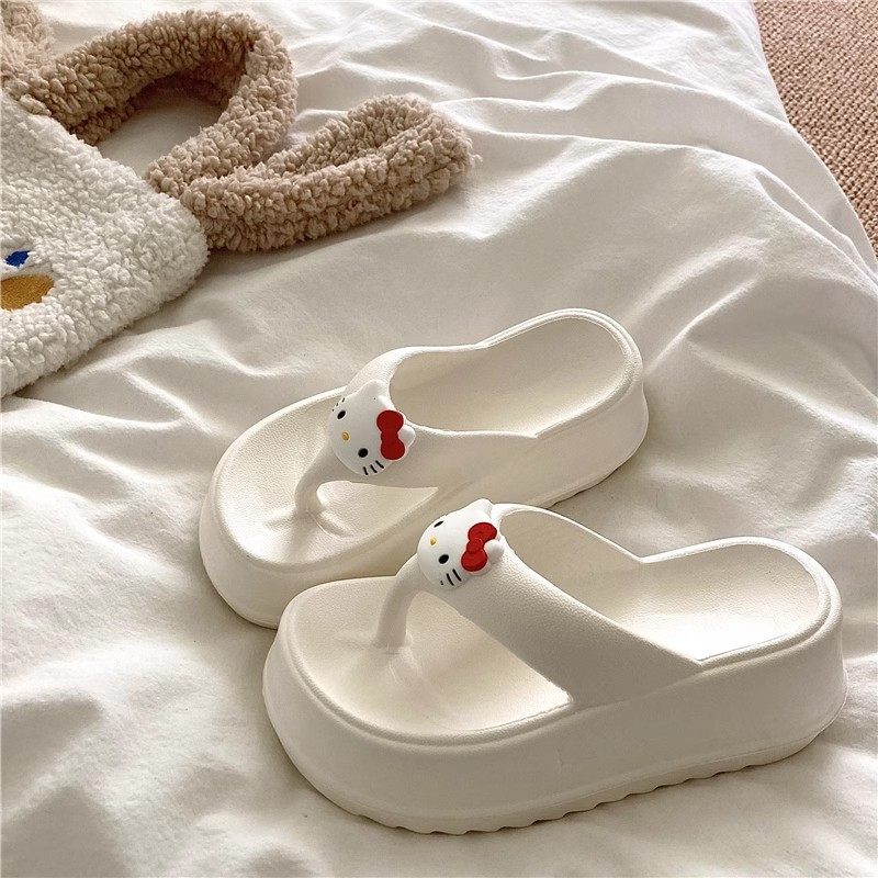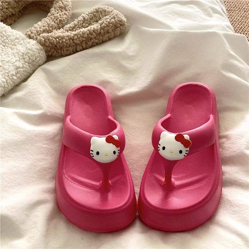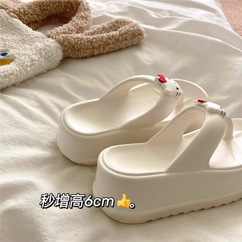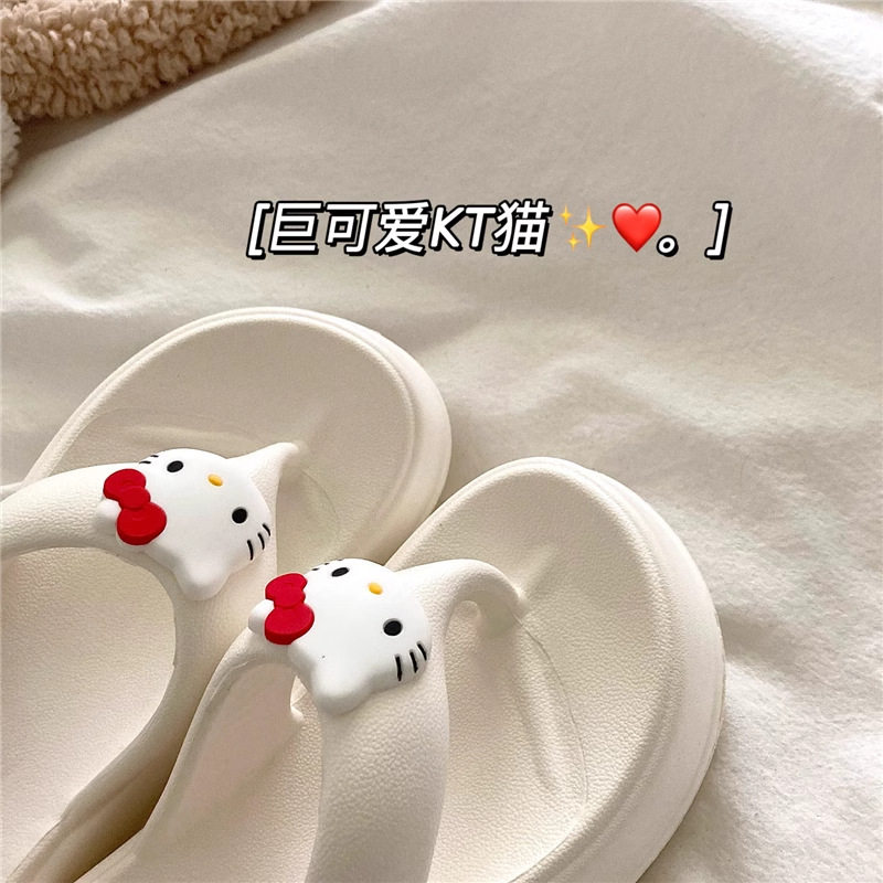 可爱KT猫人字拖女外穿海边沙滩鞋2024年新款松糕厚底坡跟拖鞋凉拖