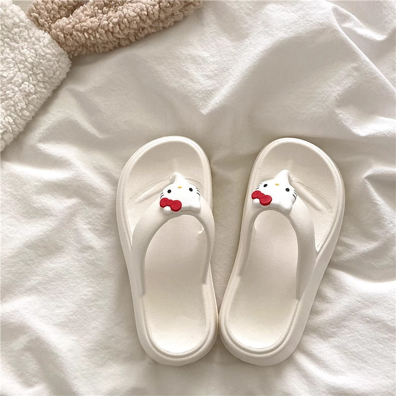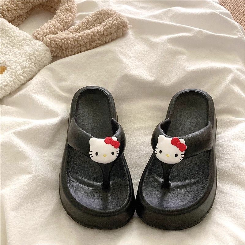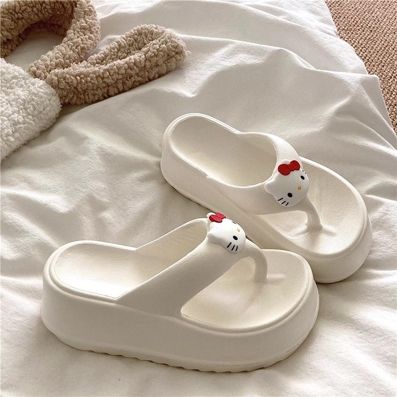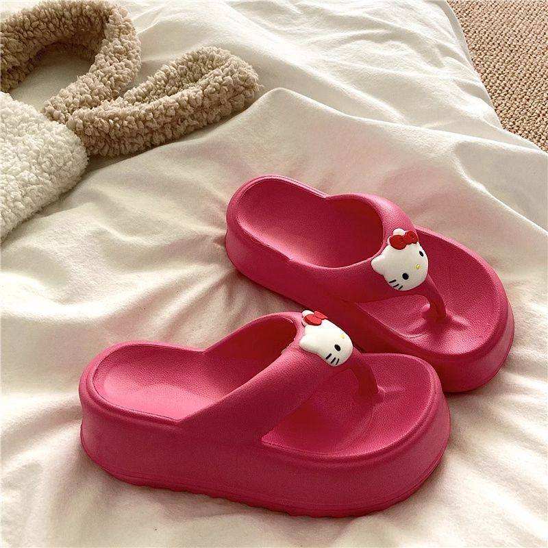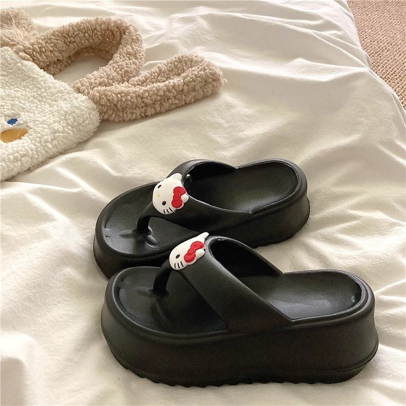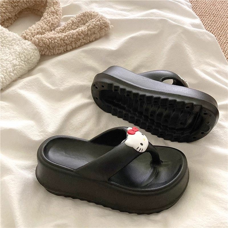 可爱KT猫人字拖女外穿海边沙滩鞋2024年新款松糕厚底坡跟拖鞋凉拖