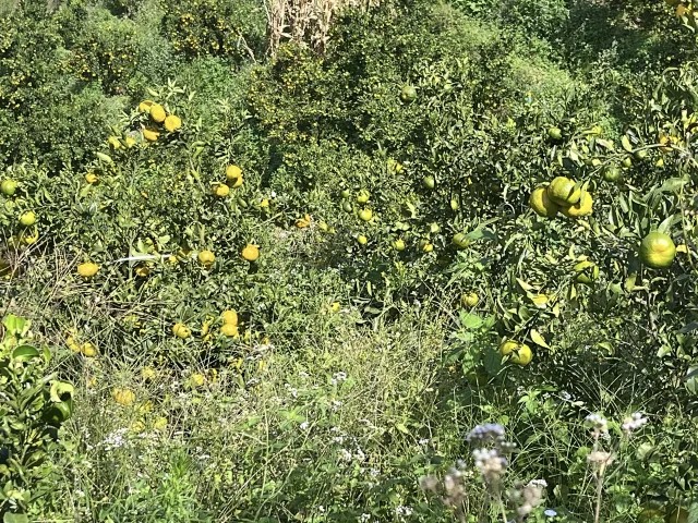 生态椪柑地的杂草夏季比较旺盛,需要花费点人力进行修剪,秋冬之季因气候原因,生长缓慢不需要修剪。每年6月份和9月份需要各割一次草,杂草割完后进行原地覆盖,补充天然绿肥,提供微生物繁殖。