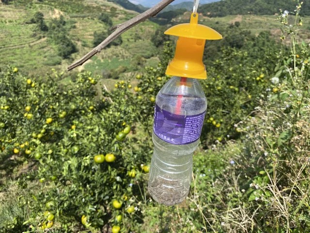 用饵剂,引诱雌雄果实蝇进瓶,避免果实蝇吃果子叮果子。