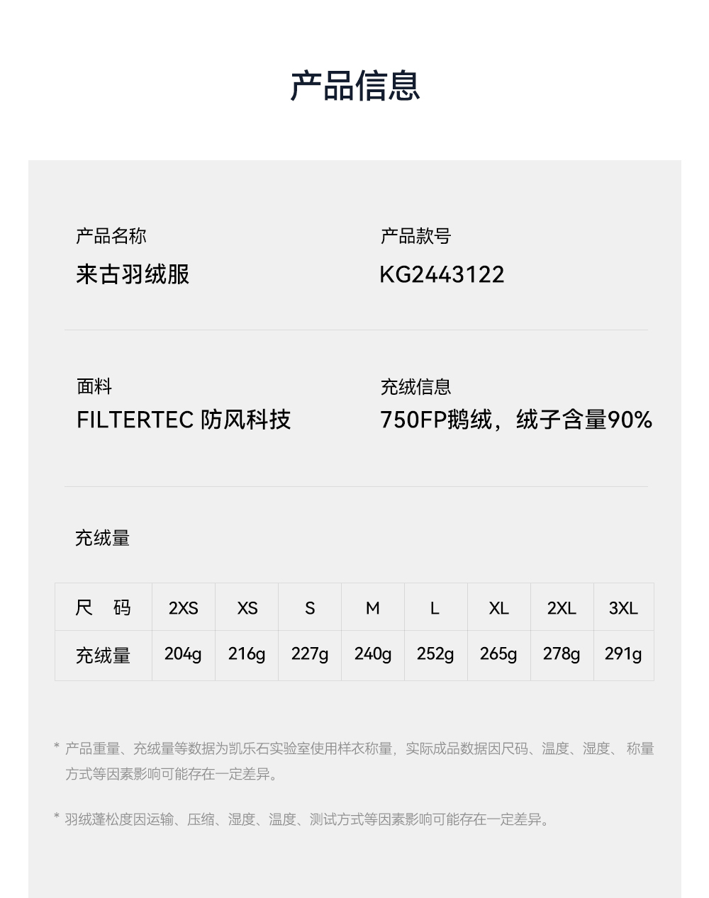 KAILAS凯乐石 户外运动 来古羽绒服 KG2443122【Z】
