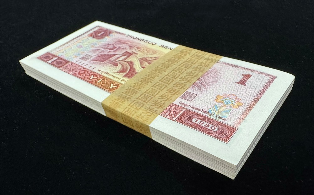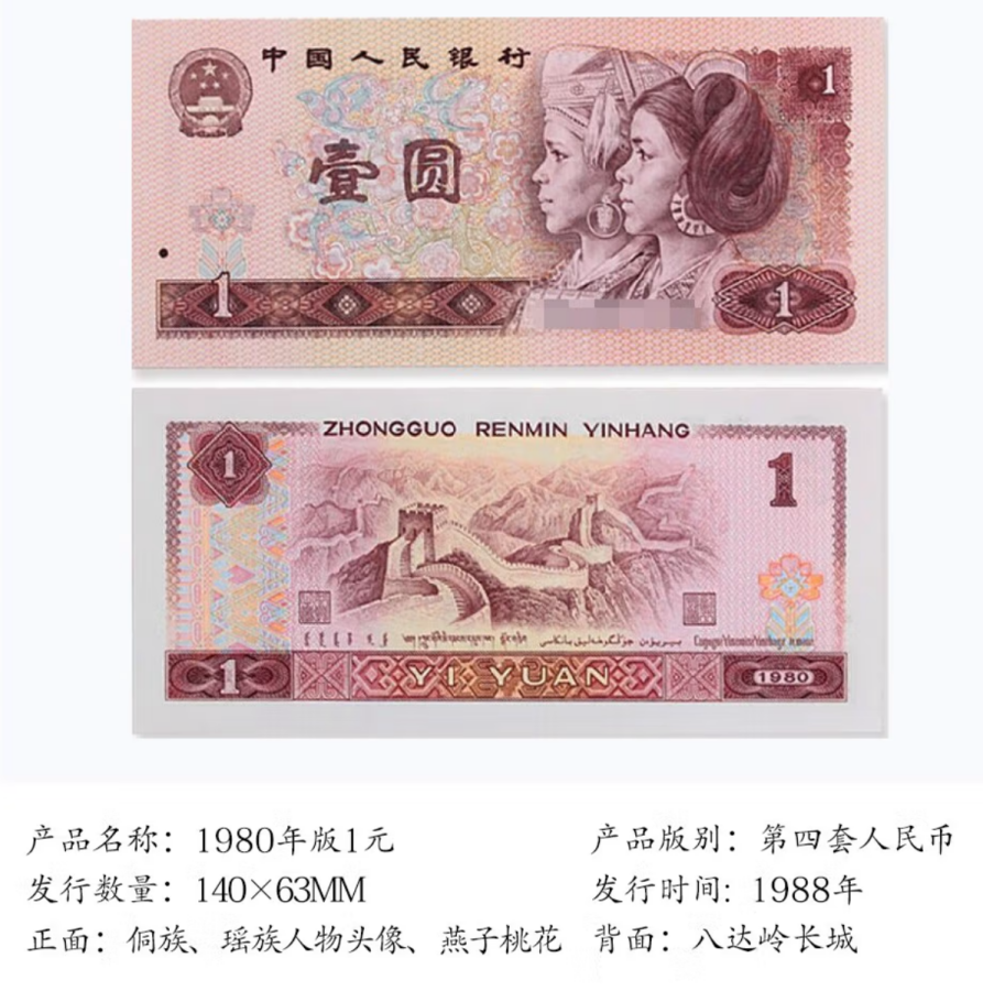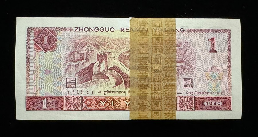 第四套80版1元整刀100张连号(赠保护盒)