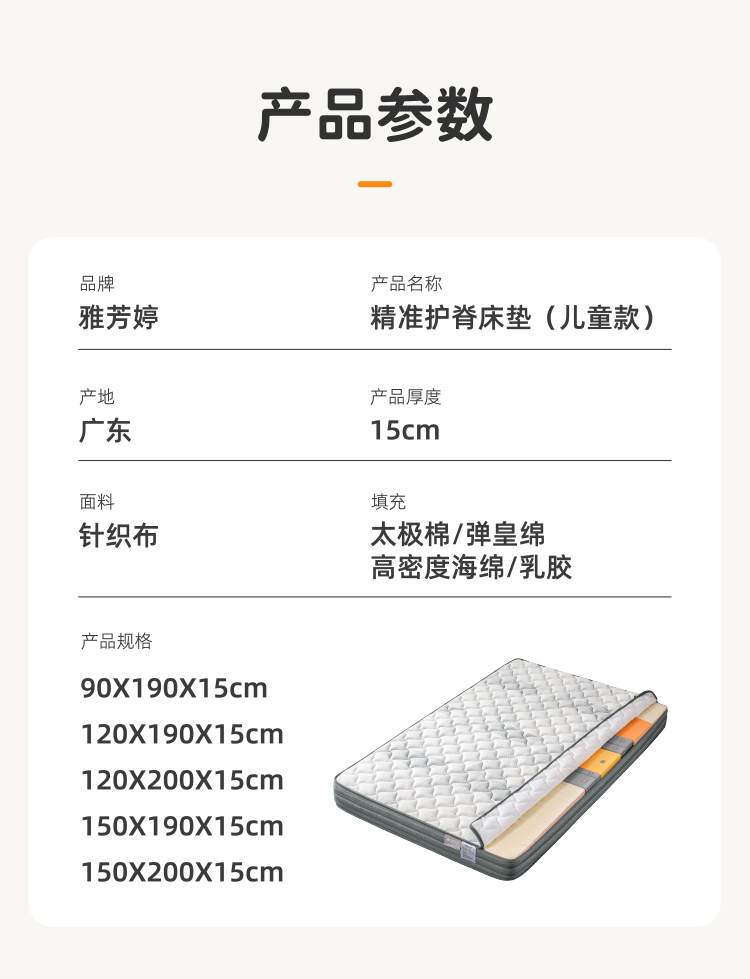 雅芳婷床垫家居床上用品点对点精准护脊床垫儿童款LK0038