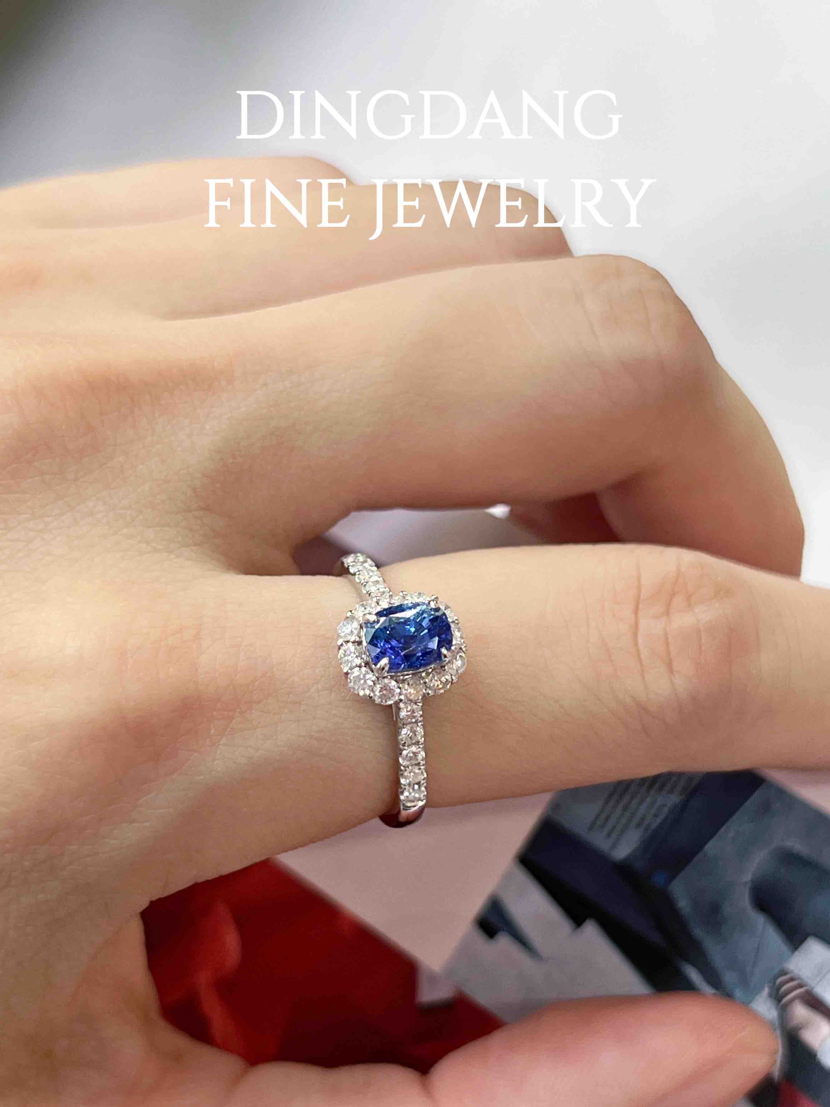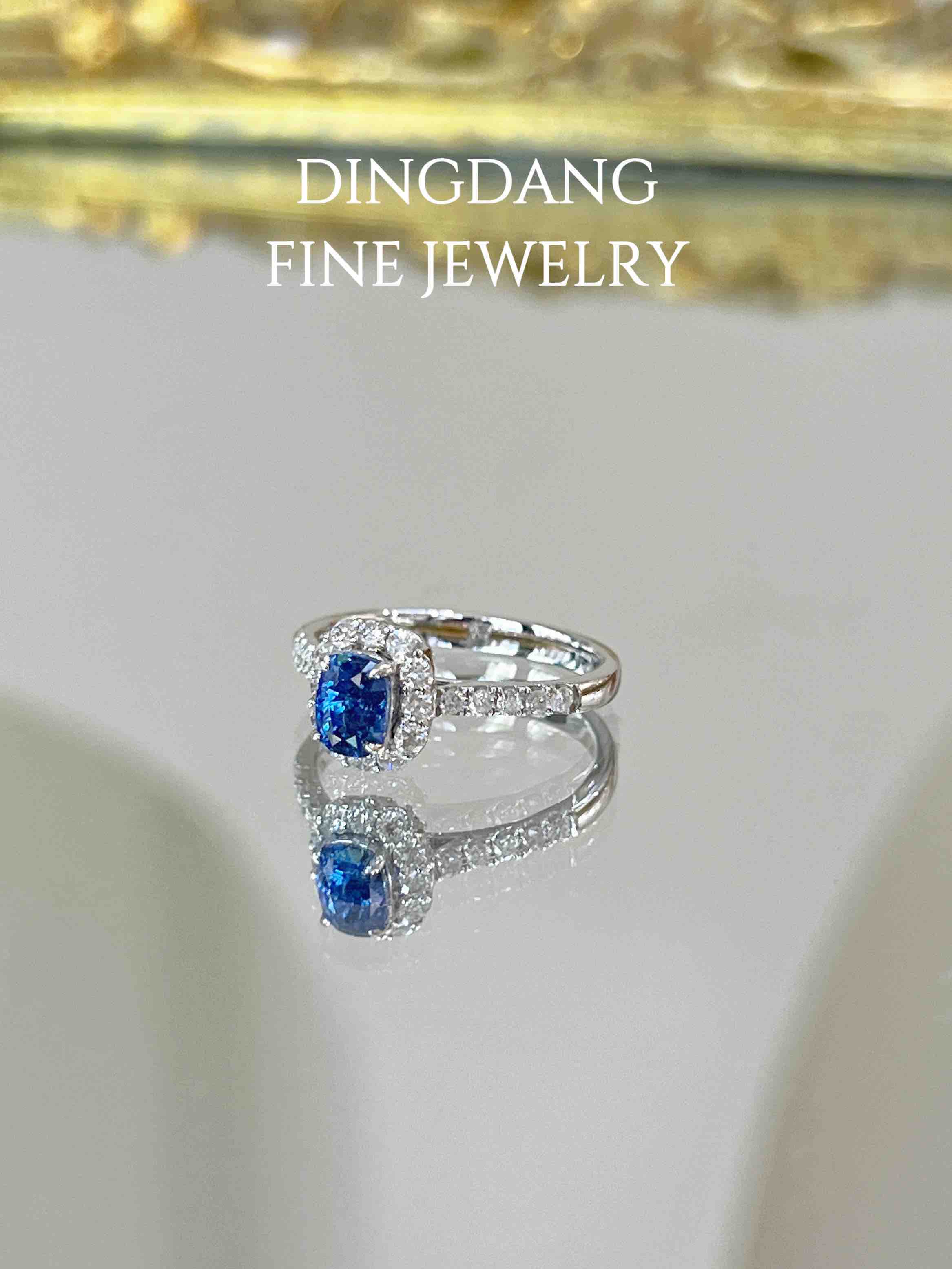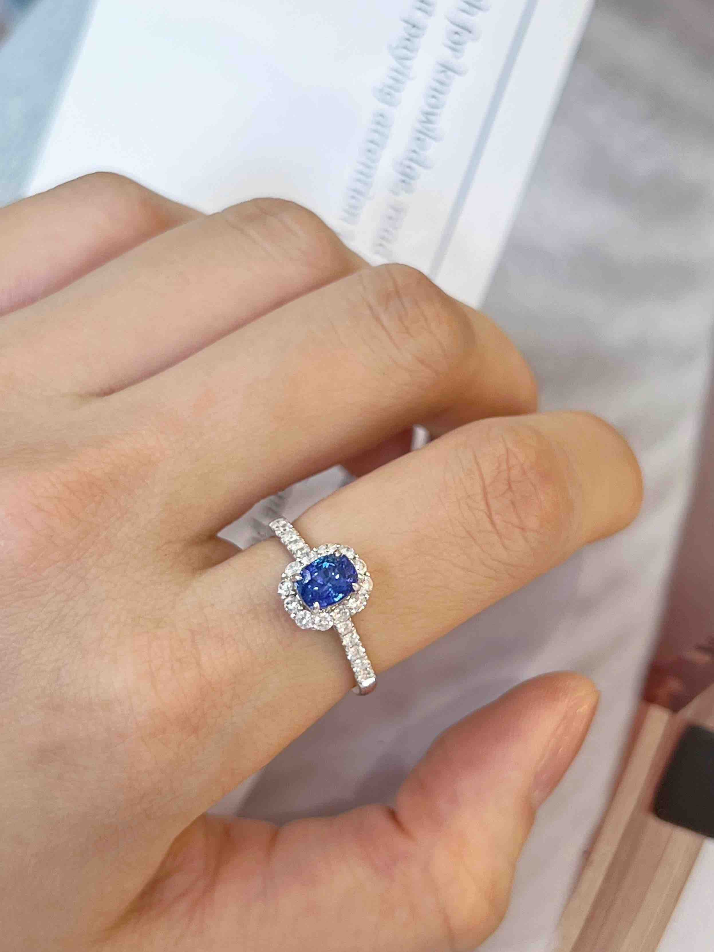 蓝宝石 矢车菊 无烧 1.13ct D0. 6ct 钻戒
