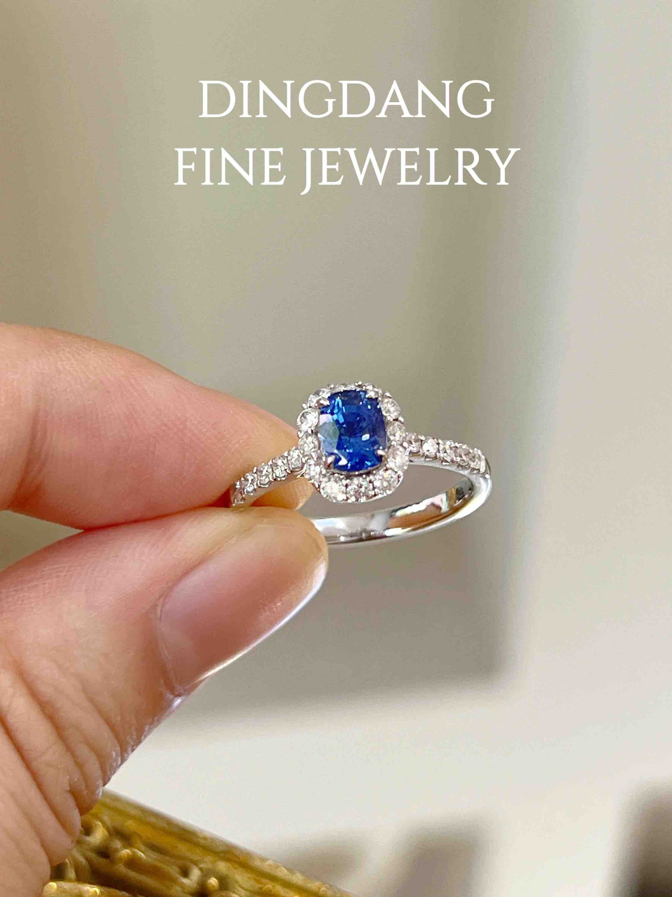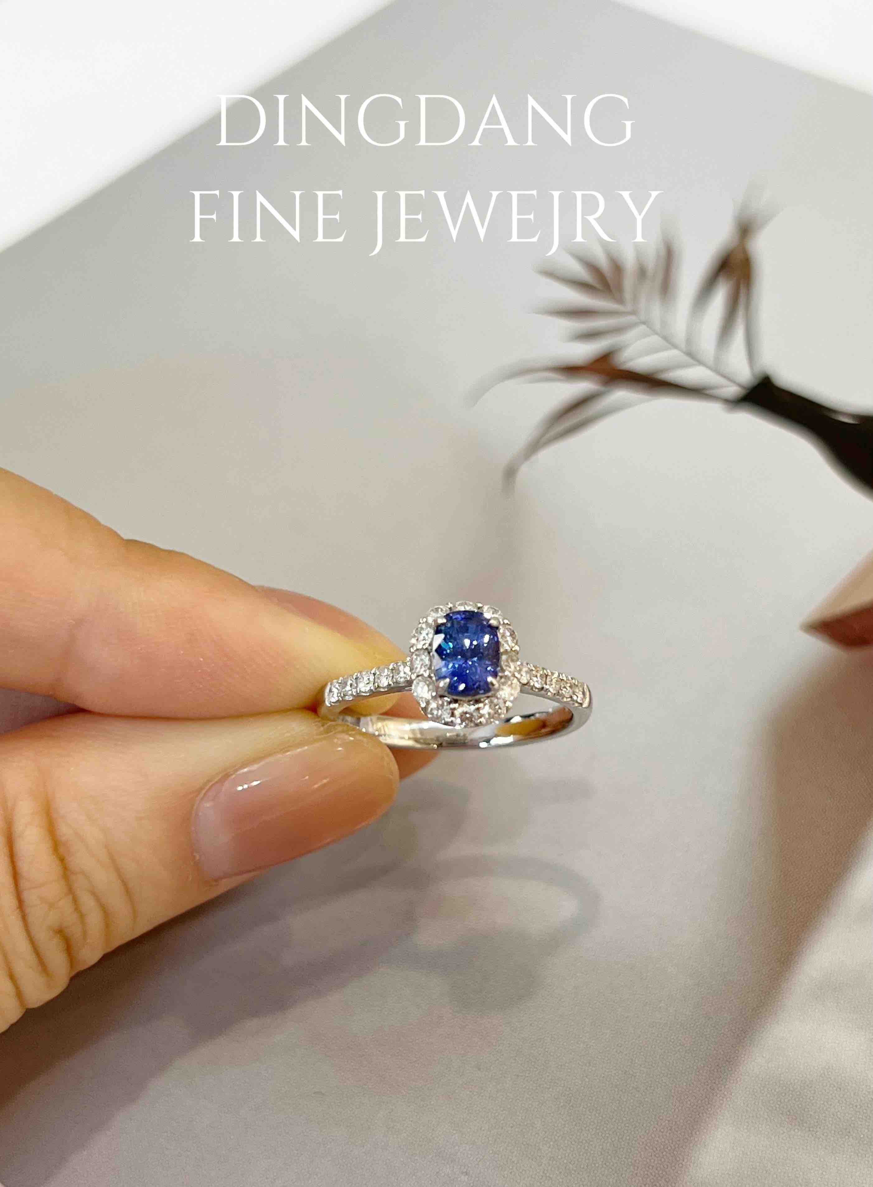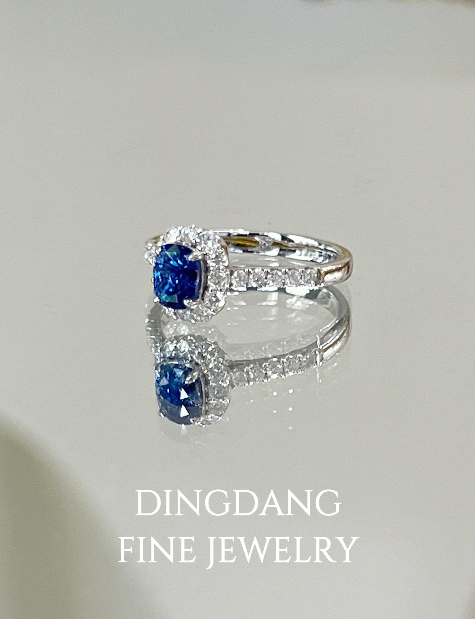 蓝宝石 矢车菊 无烧 1.13ct D0. 6ct 钻戒