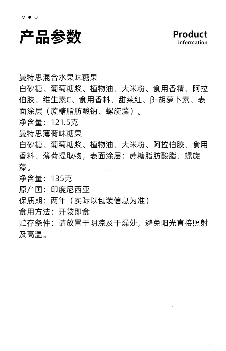 印度尼西亚进口曼特思糖果121.5-135g【混合水果味丨薄荷味】