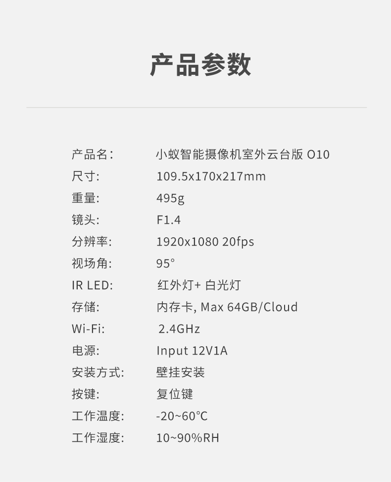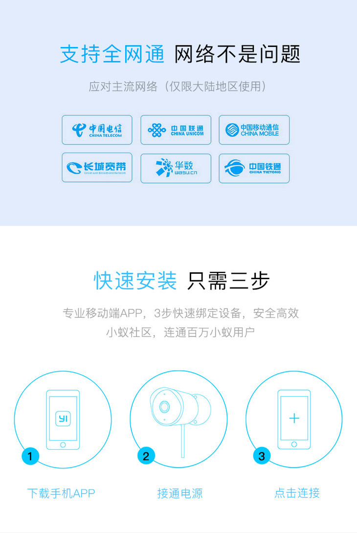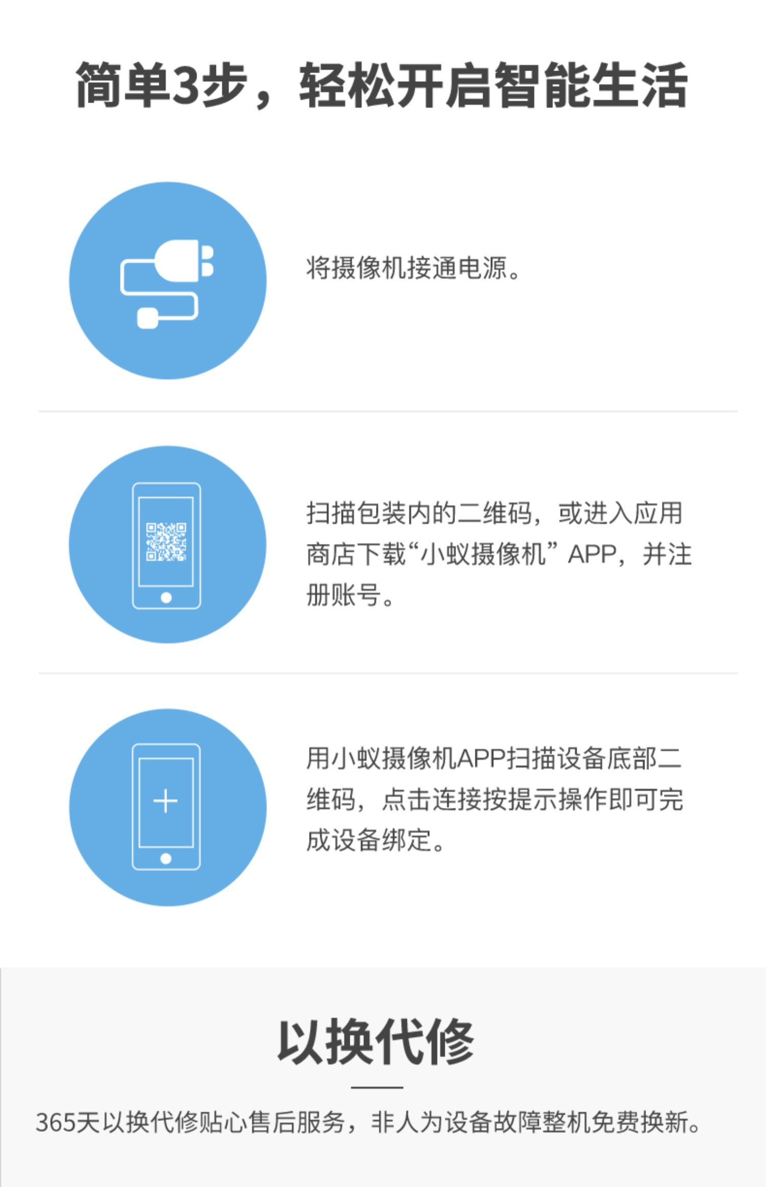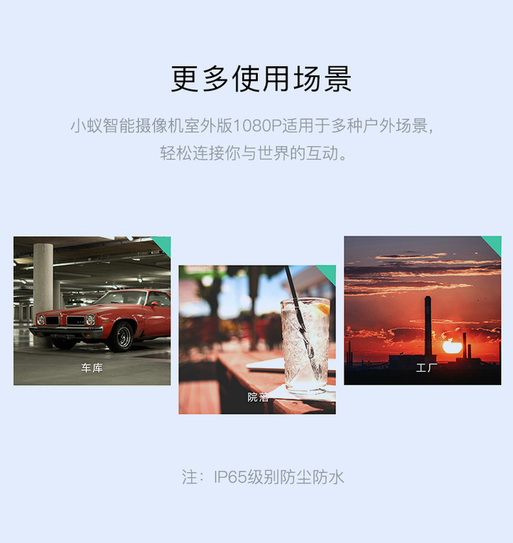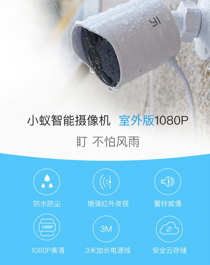 - 小蚁智能摄像机——随意放置任意角落,通过手机或平板,随时随地视频观察家中情况。即使不在家,也可随时进行双向语音通话,远程与家人互动,抓拍欢乐瞬间,不错过任何精彩时刻。