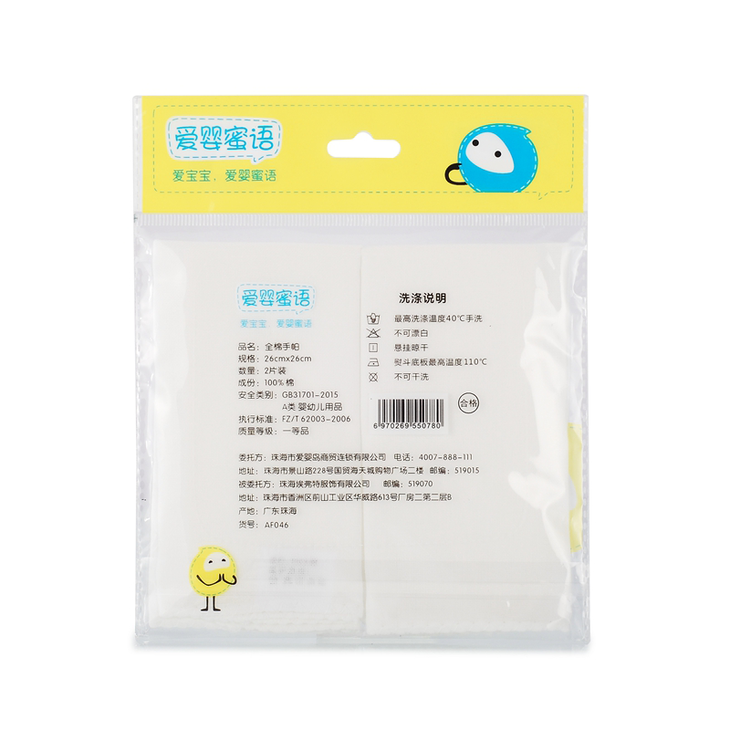 爱婴蜜语全棉手帕2条装AF046#26*26