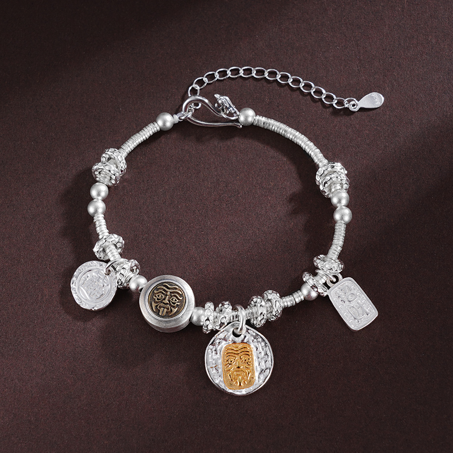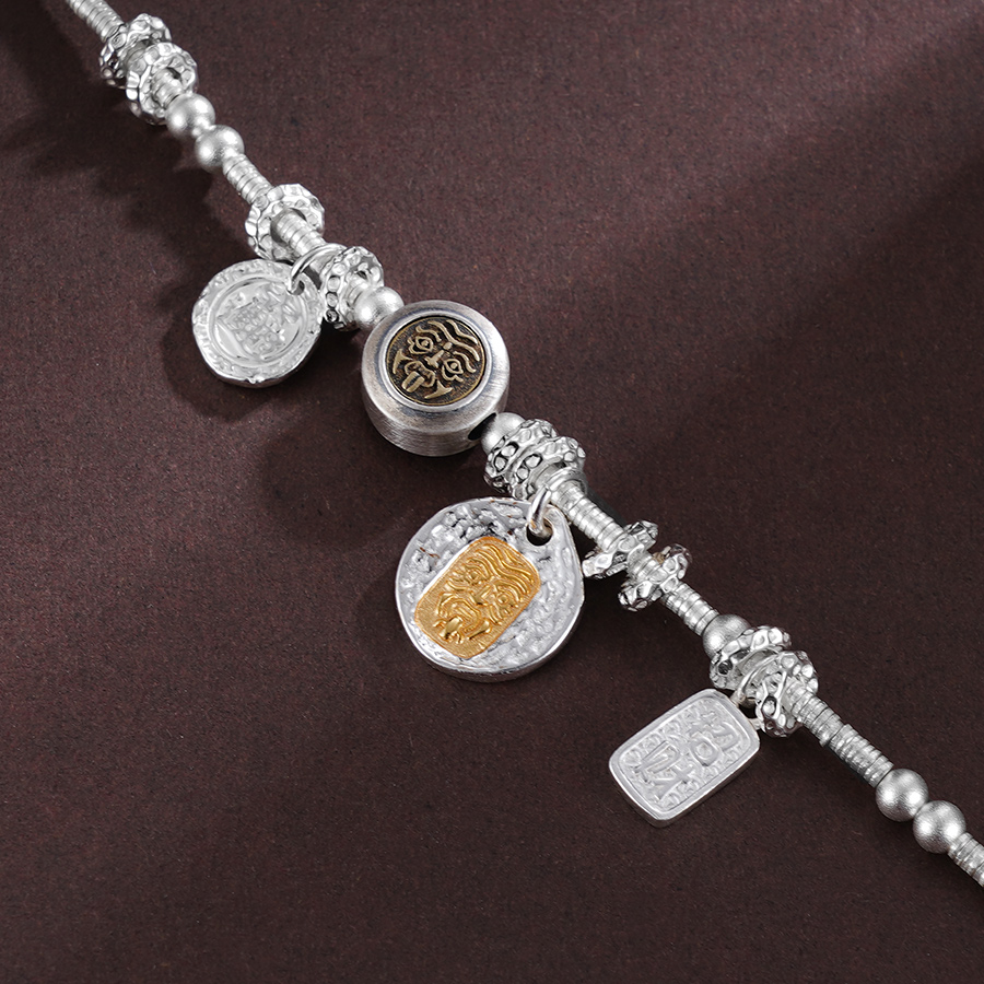【寓意】:手链的设计灵感源于神女“扎基拉姆”,于小圆环之上雕琢神女头像,打造出这款独具特色的手链。设计简约而不失高雅,象征着福财双至、吉祥如意。