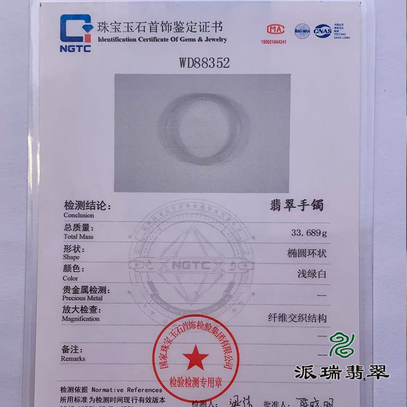 派瑞翡翠 翡翠手镯 糯种 浅绿色