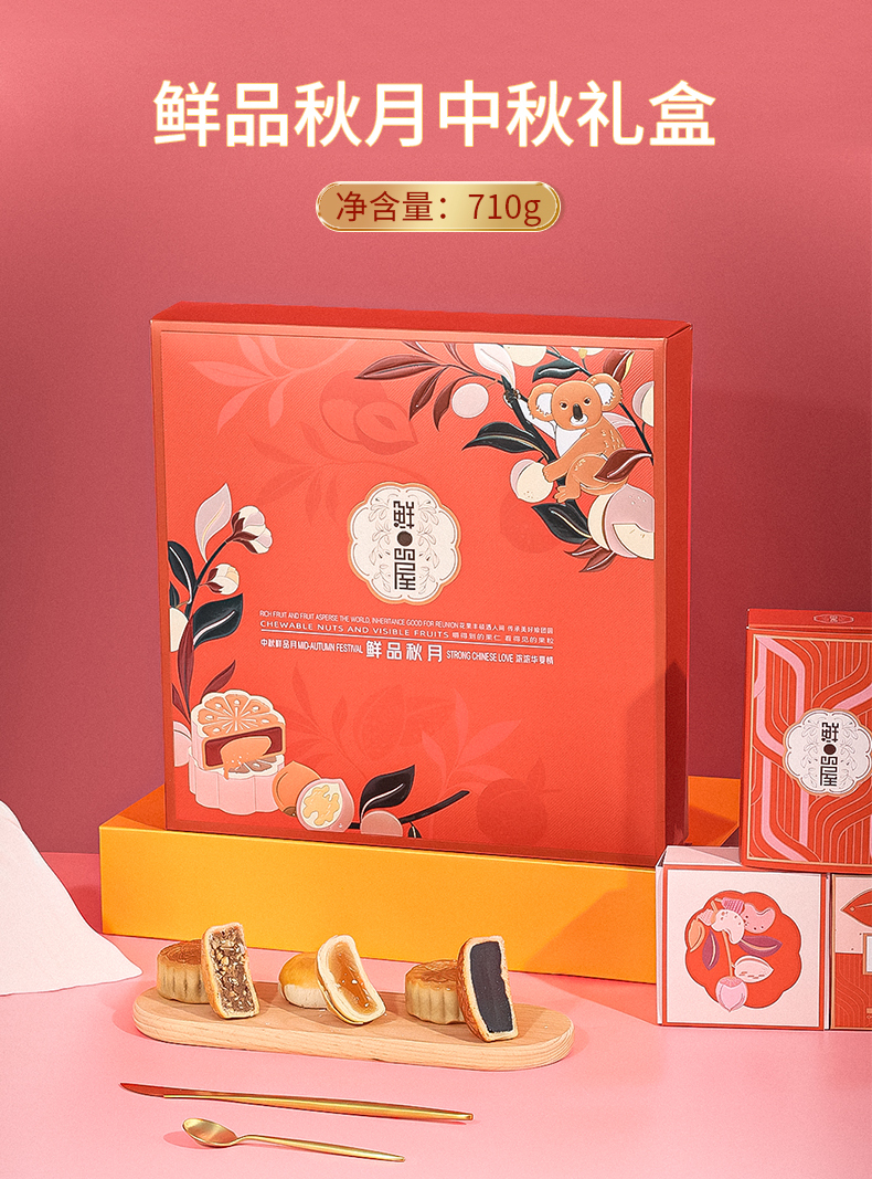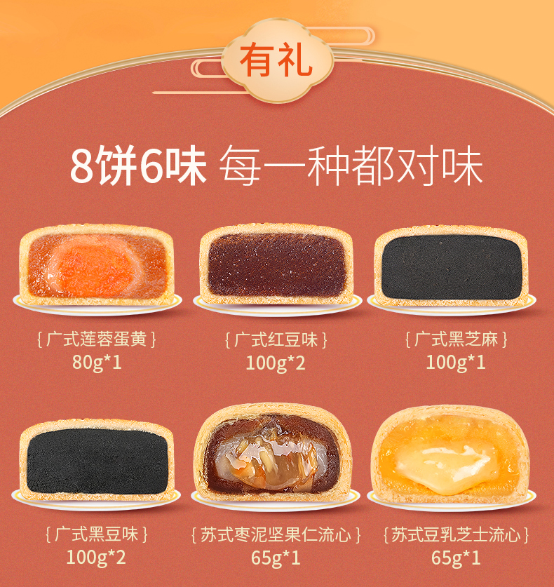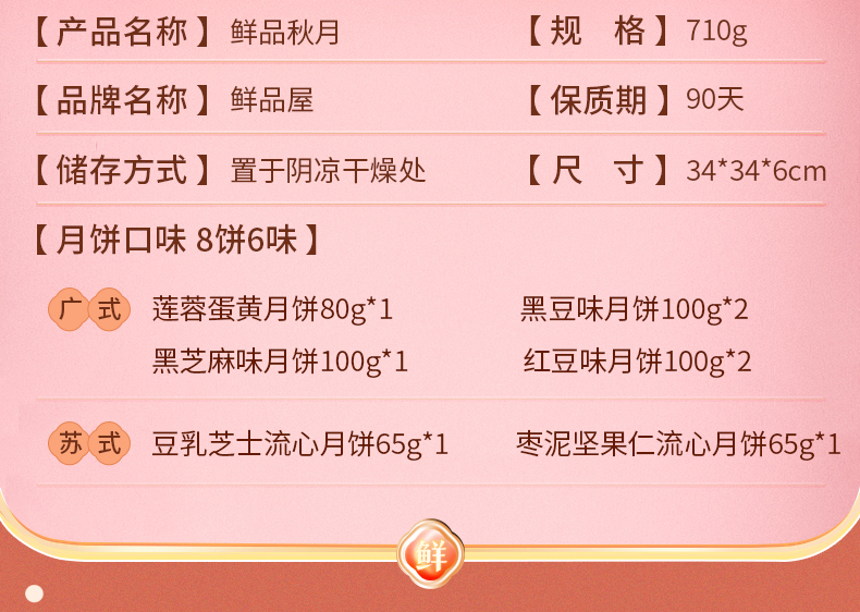 【月享中秋】鲜品屋月饼中秋节礼盒蛋黄莲蓉多口味(广式+苏式)8饼6味 鲜品秋月710g