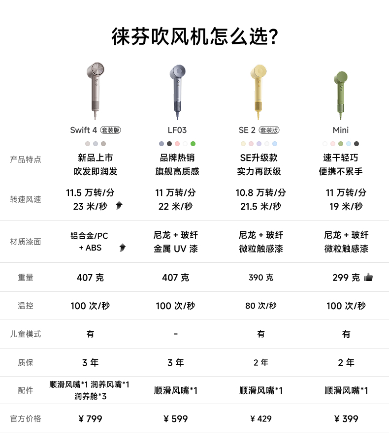 Laifen徕芬高速吹风机Mini 赠支架 负离子护发速干电吹风宿舍家用便携出差旅行