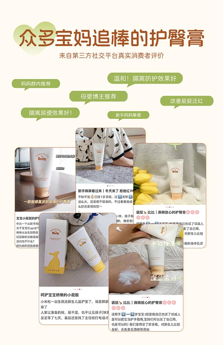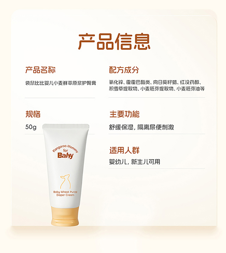【纸尿裤搭档】预防红屁屁 舒缓泛红 一抹成膜 婴儿小麦鲜萃原浆护臀膏(50g)