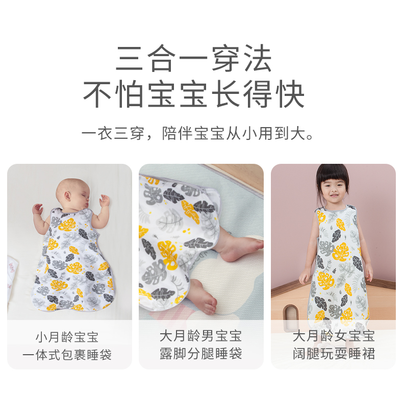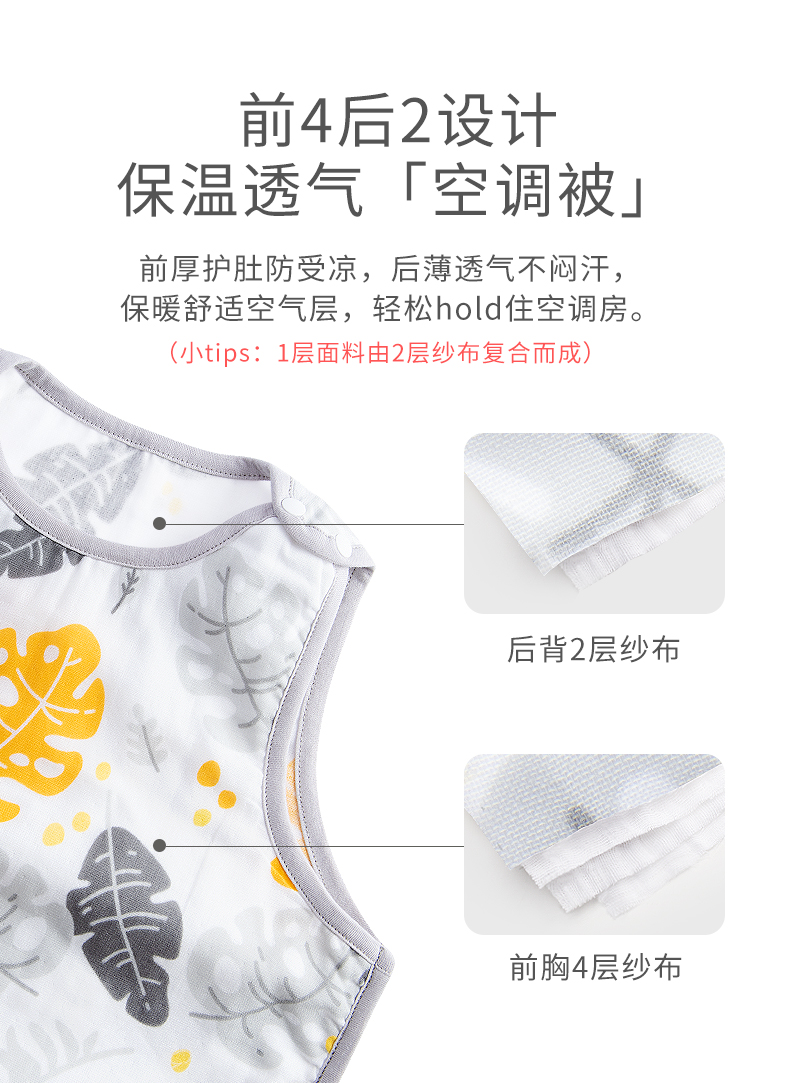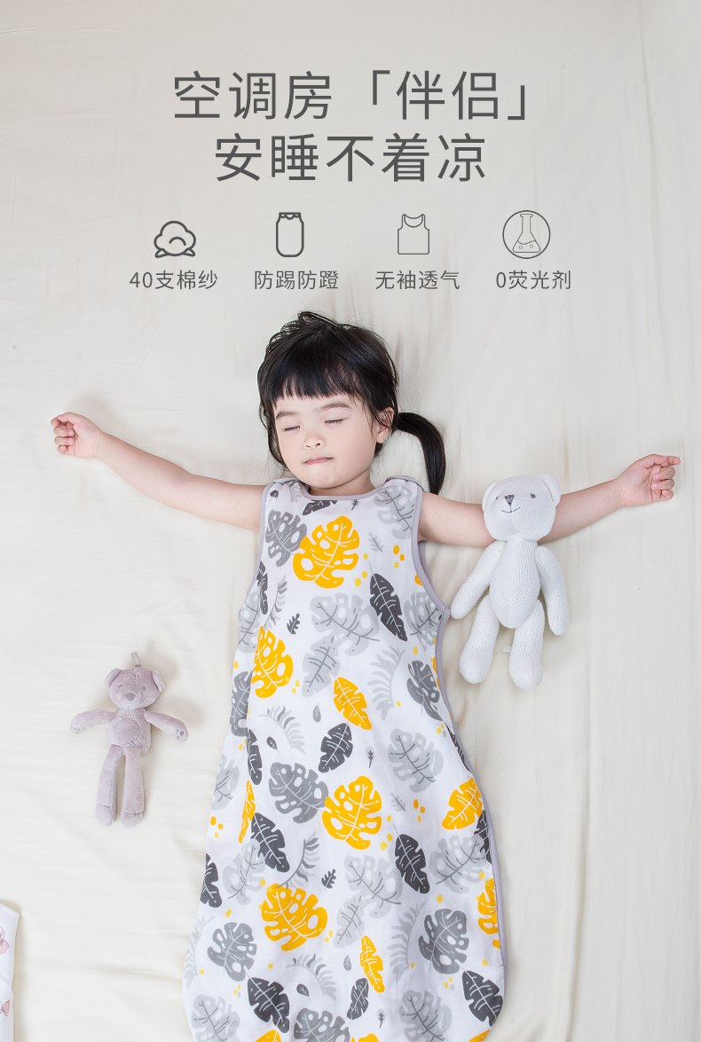 睡袋夏季薄款婴儿童睡袋宝宝纱布夏天背心防惊跳睡袋