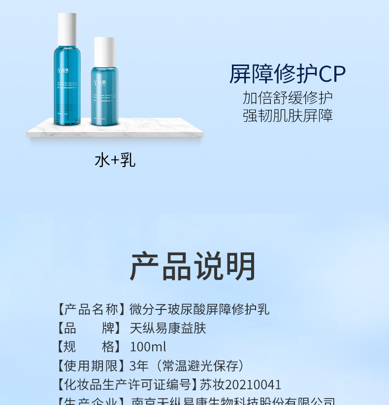 益肤微分子玻尿酸屏障修护乳100ml瓶