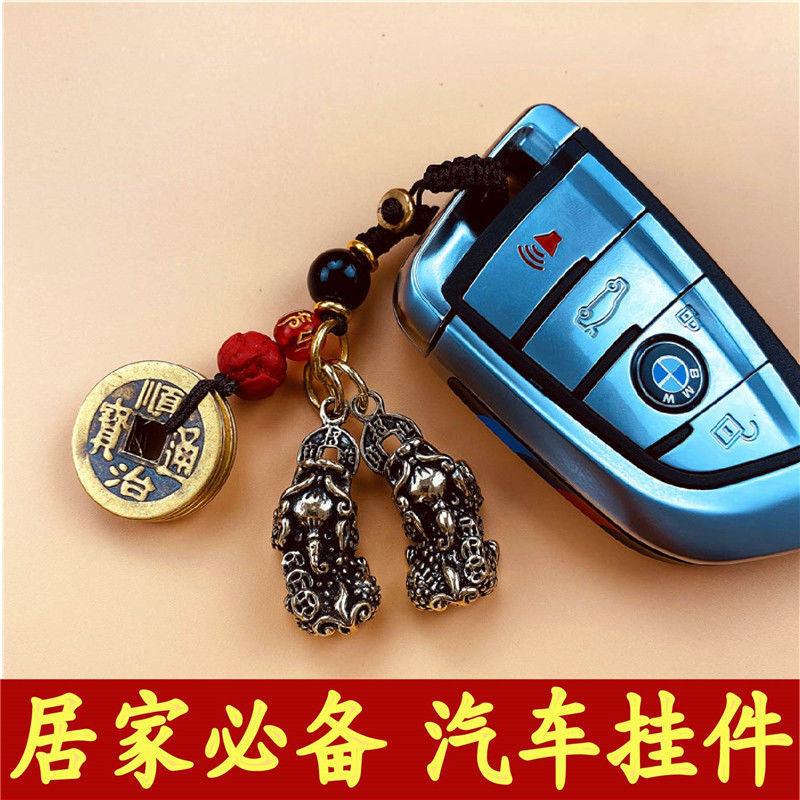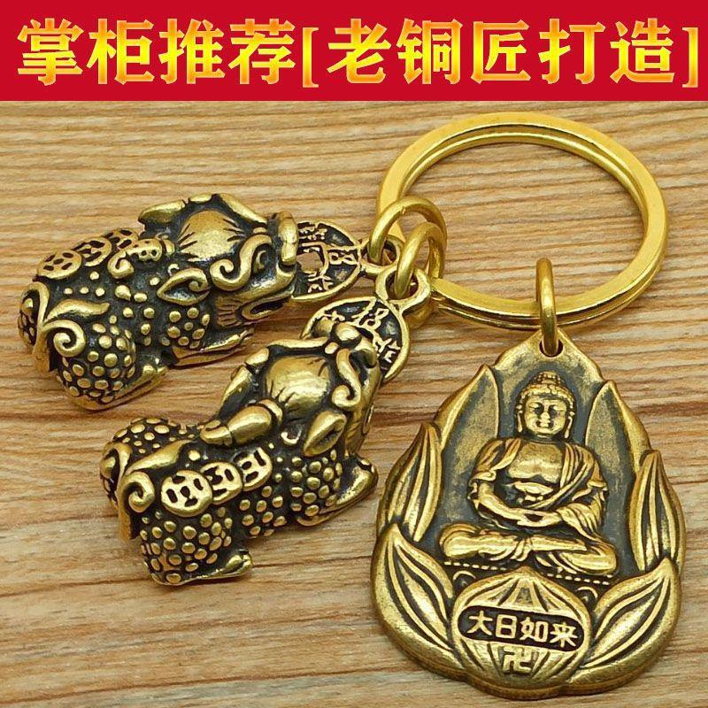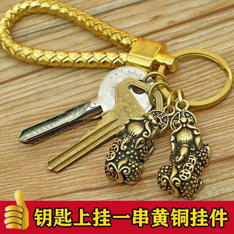 纯黄铜空心葫芦钥匙扣双貔貅钥匙挂件纯铜五帝铜钱钥匙链礼品挂