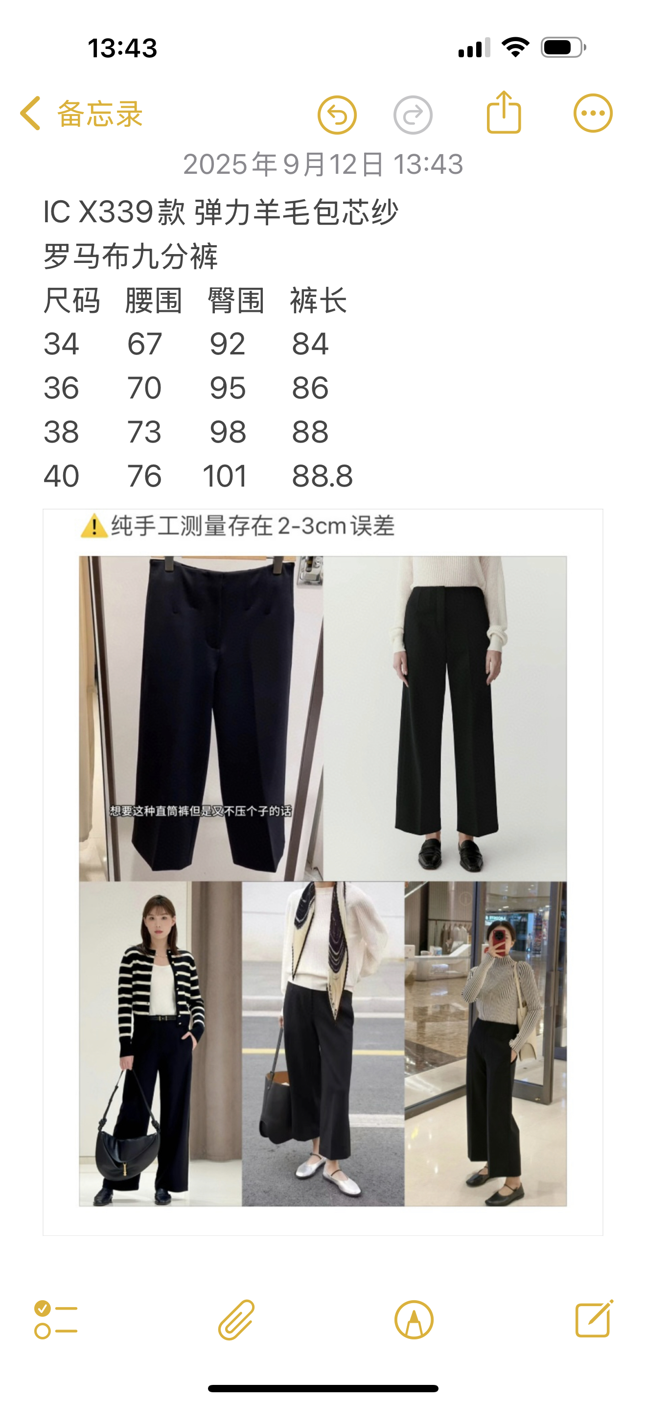 材质96%羊毛➕4%弹力纤维,200块一米的面料嗷,腰头内侧、拼缝都是包边工艺。工艺很细致,拼缝也是立体的,上身线条更流畅,包容各种腿型!可休闲可通勤,各种上装都好搭配。