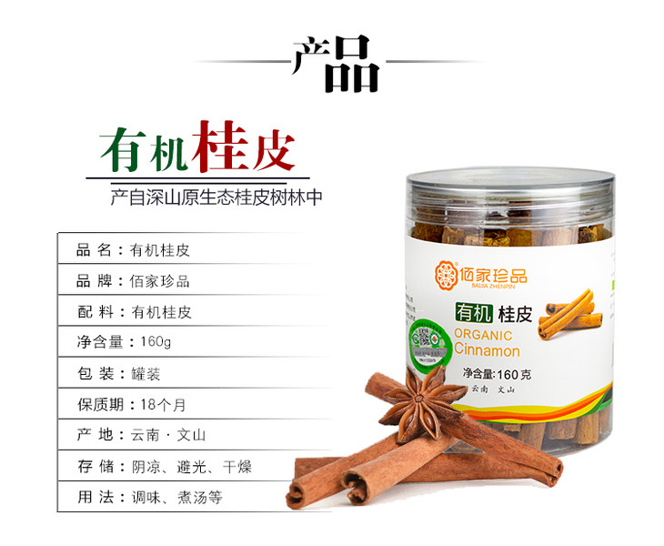 云南基地种植的有机八角桂皮道地草果组合套装 桂皮160g/八角100g/草果170g