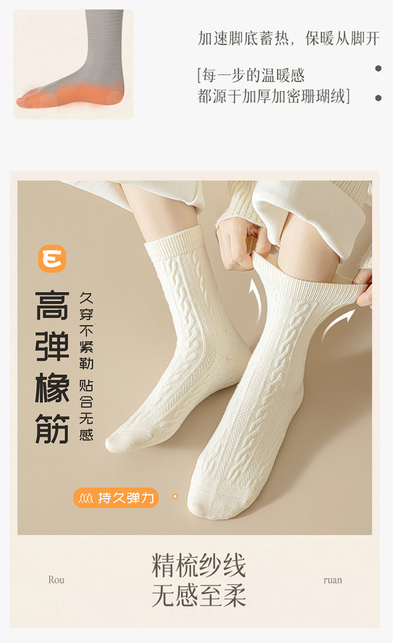 【女士麻花长袜】中筒袜子女秋冬纯色棉袜棉底袜女士无骨加厚麻花长袜