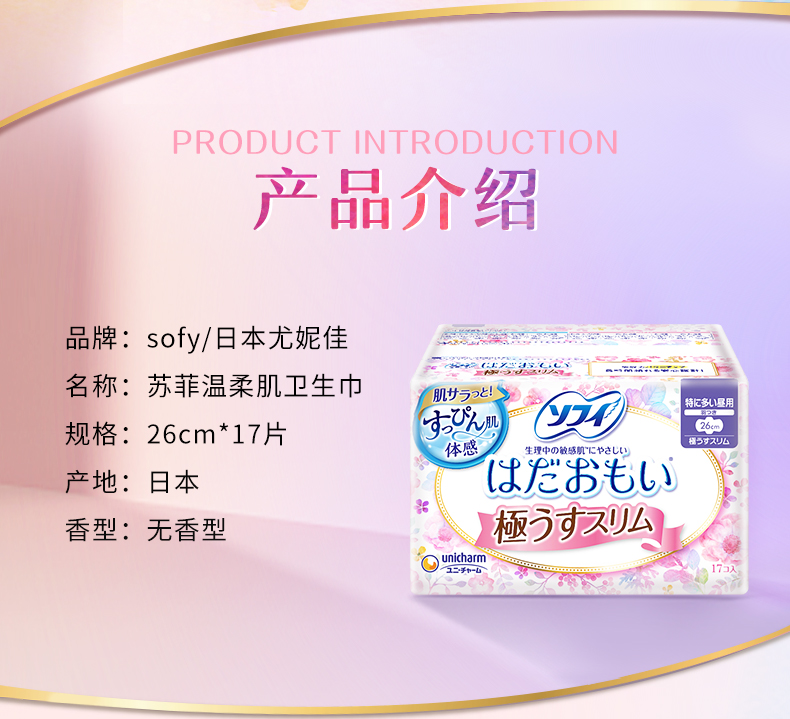 尤妮佳卫生巾26cmX17片/110400 柔滑触感吸收力UP