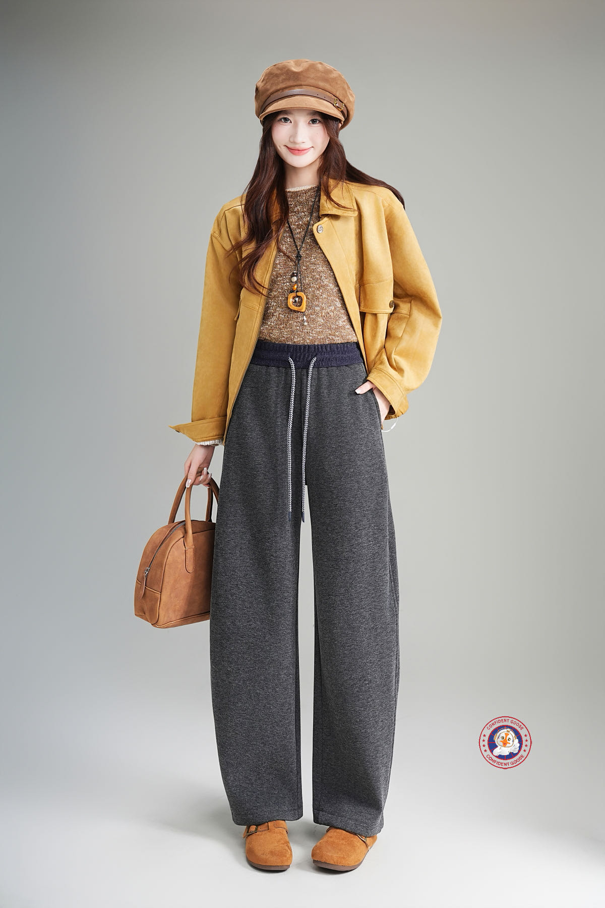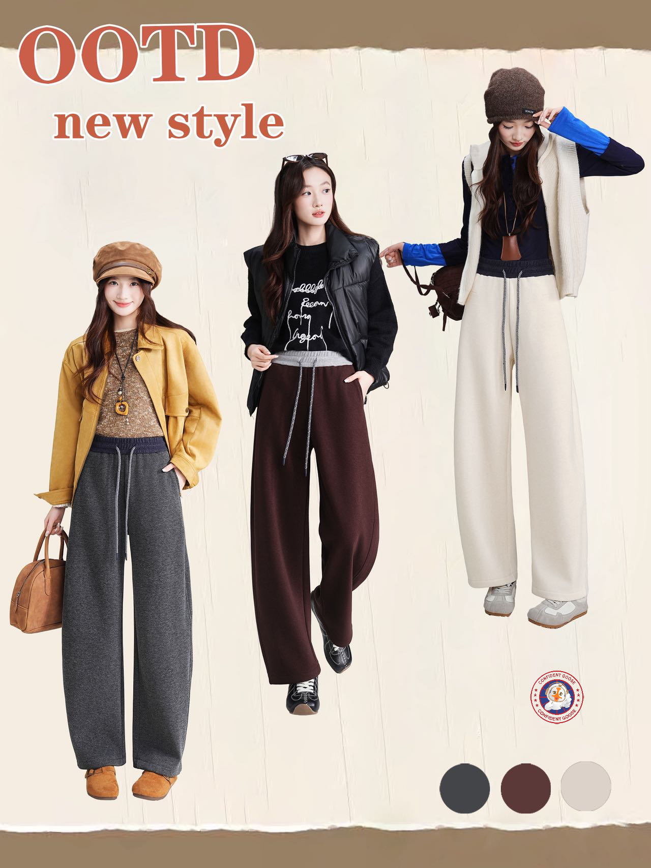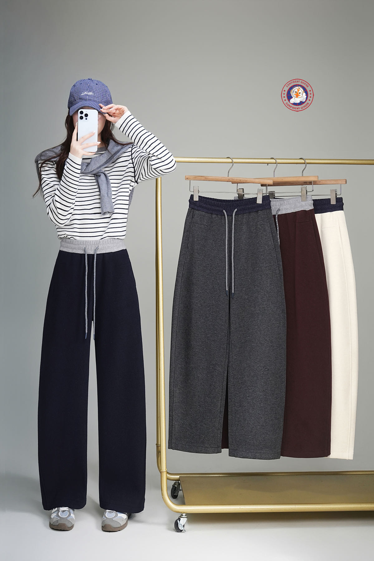 过冬神裤【Confident Goose加绒弯刀裤】腿粗 胯宽全藏住 腰头撞色+抽绳设计 加绒加厚 软糯亲肤#L