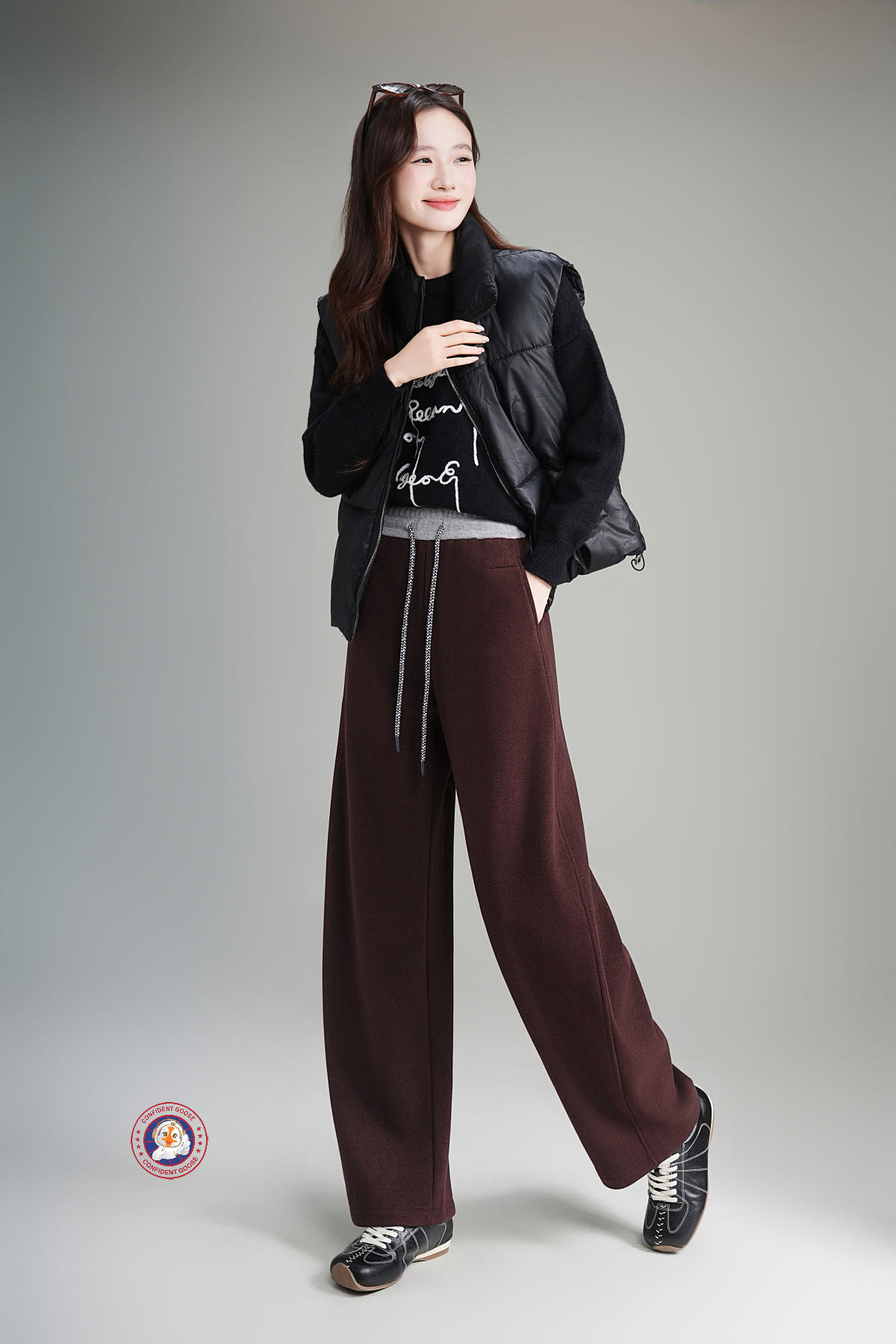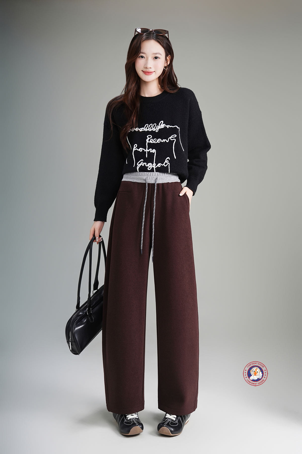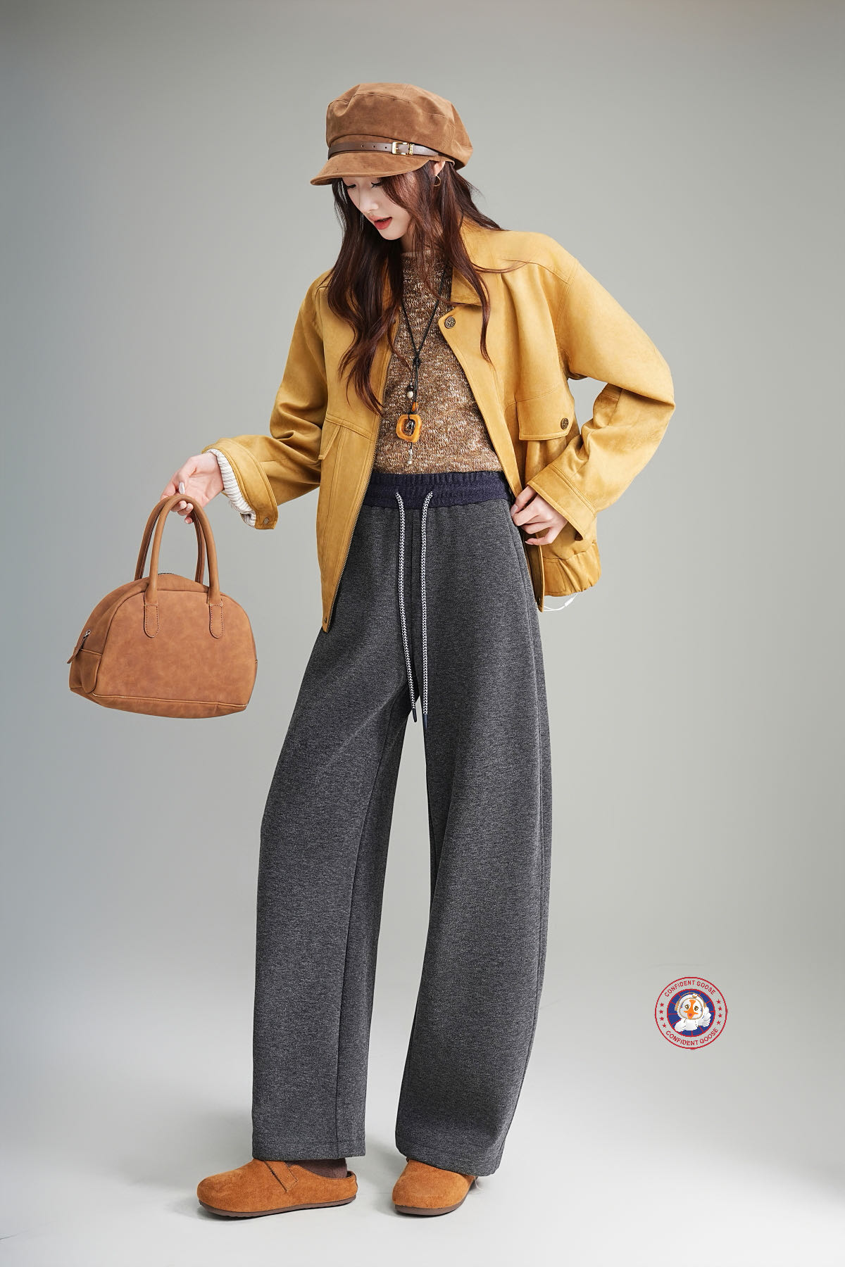 过冬神裤【Confident Goose加绒弯刀裤】腿粗 胯宽全藏住 腰头撞色+抽绳设计 加绒加厚 软糯亲肤#L