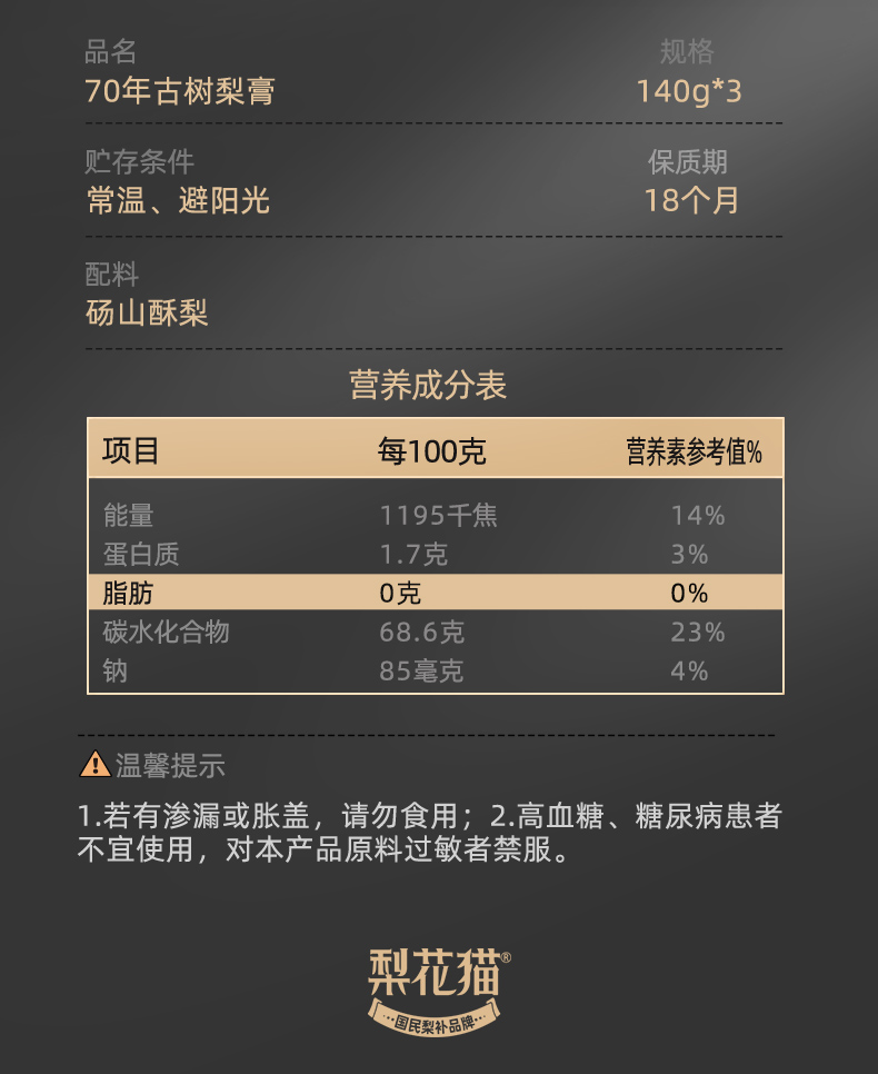 梨花猫70年古树梨膏 鲜梨熬不添加 真的润 商品图1