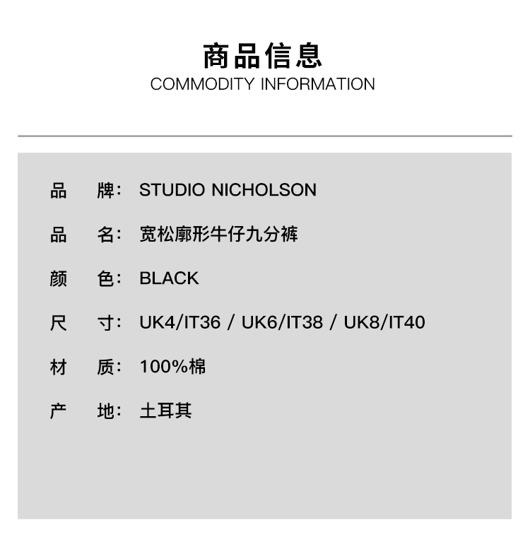 STUDIO NICHOLSON DENIM CURVED LEG PANT女装宽松廓形牛仔九分裤