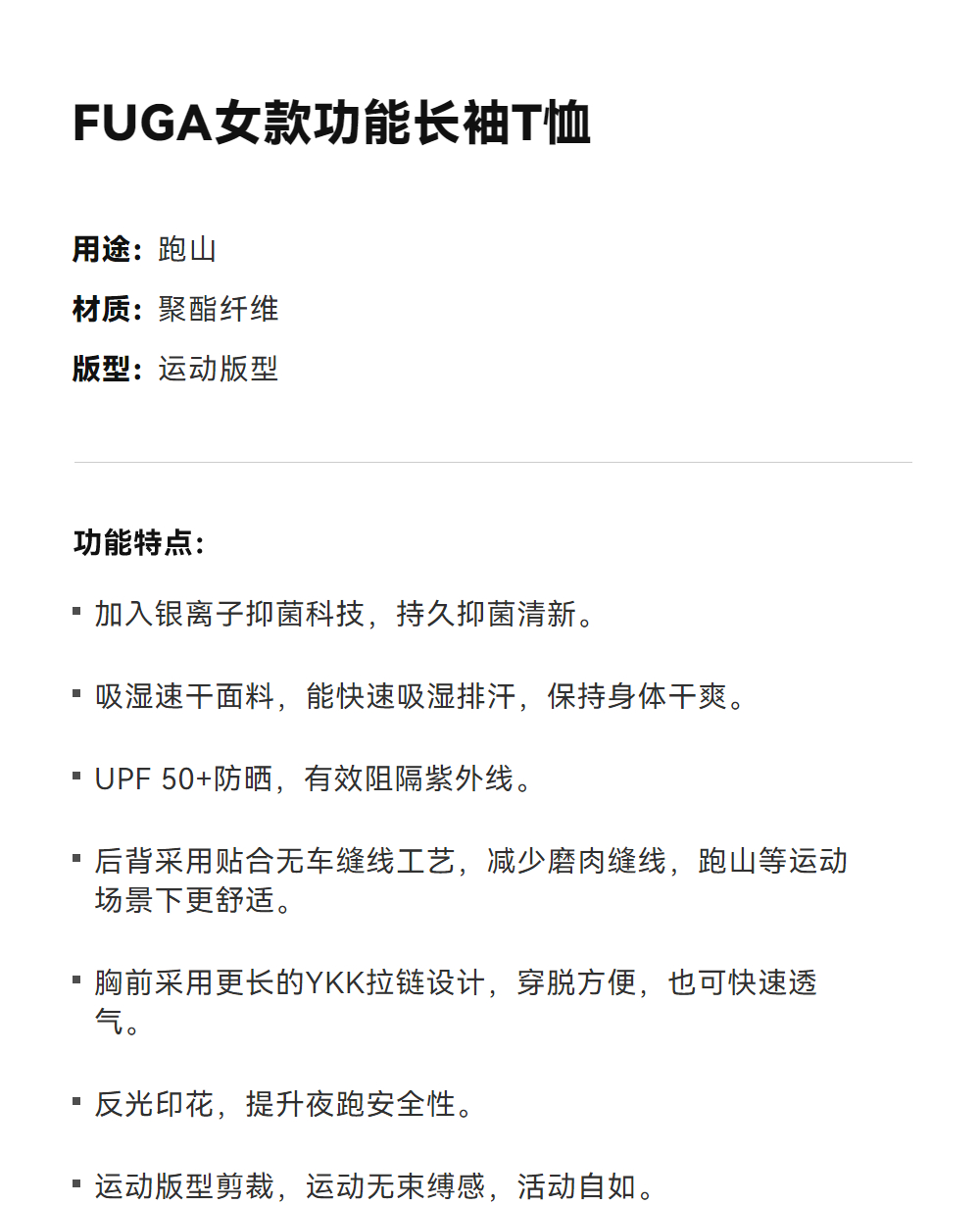 KAILAS凯乐石 KG2537215 FUGA女款功能长袖T恤