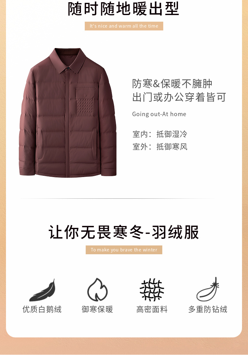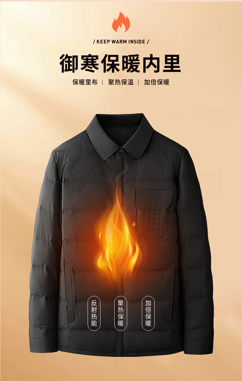 【鹅绒】圣得西个性潮款2025年冬季男士羽绒服翻领轻薄保暖外套