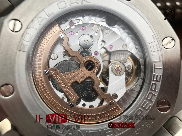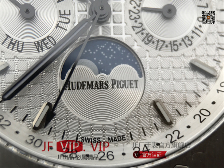 JF爱彼皇家橡树26574。功能:日期显示、星期显示、月份显示、年历显示、万年历、月相进口机克隆原装5134自动机械机芯,