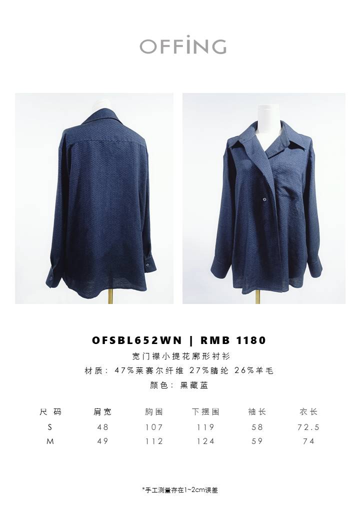 OFFiNG 宽门襟小提花廓形衬衫