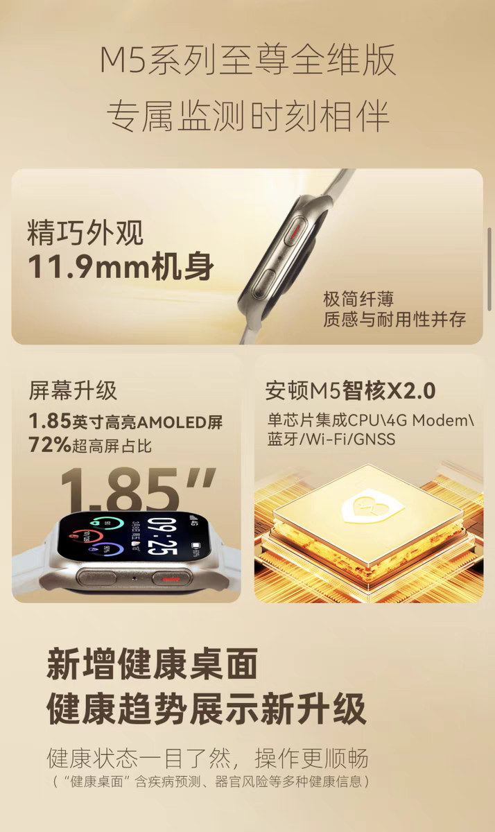 安顿M5至尊全维健康预警手表全维版智能手表
