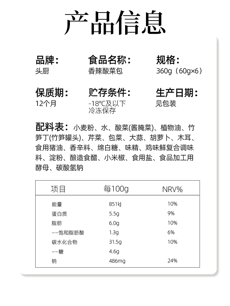头厨|“大”包子系列:香辣酸菜包+菌菇卤肉包(360G/6只/袋)