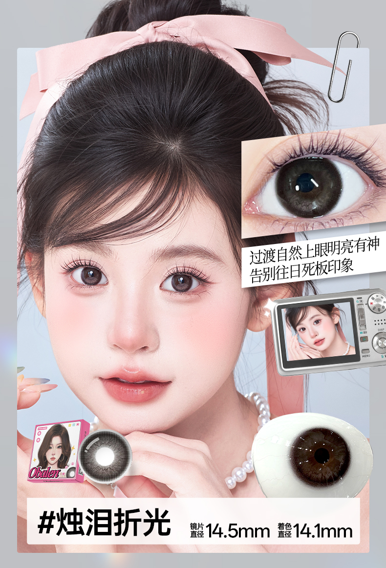 新品【玻璃珠】方盒系列Obalen欧巴兰淡颜天菜【烛泪折光】14.5大直径日常伪素颜神器百搭自然款半年抛美瞳非离子隐形眼镜2片装