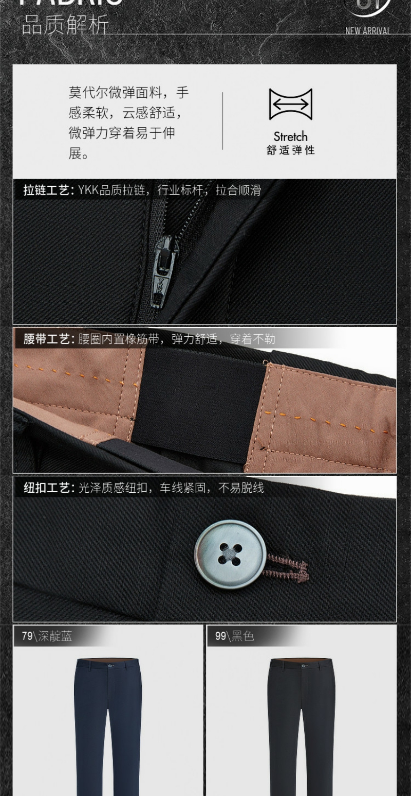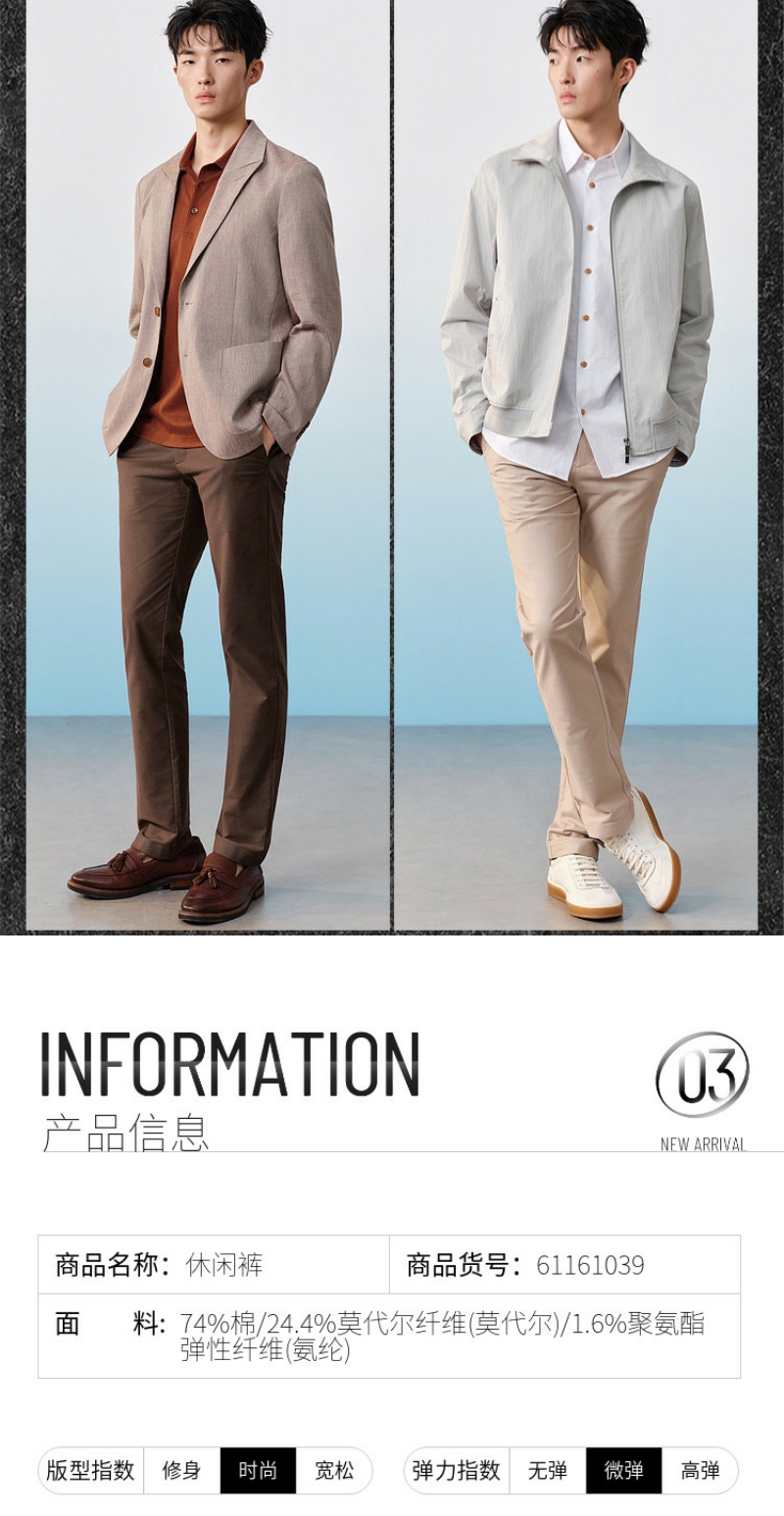 G2000男装SS26商场新款【棉质莫代尔弹性】百搭弹性腰头休闲裤61161039
