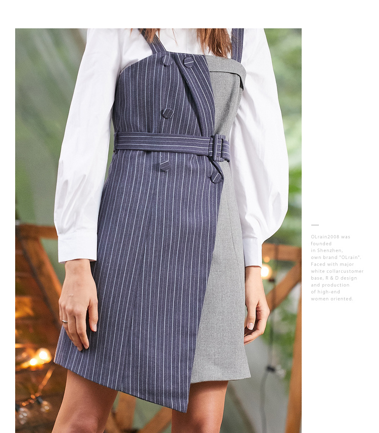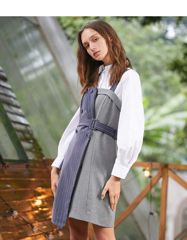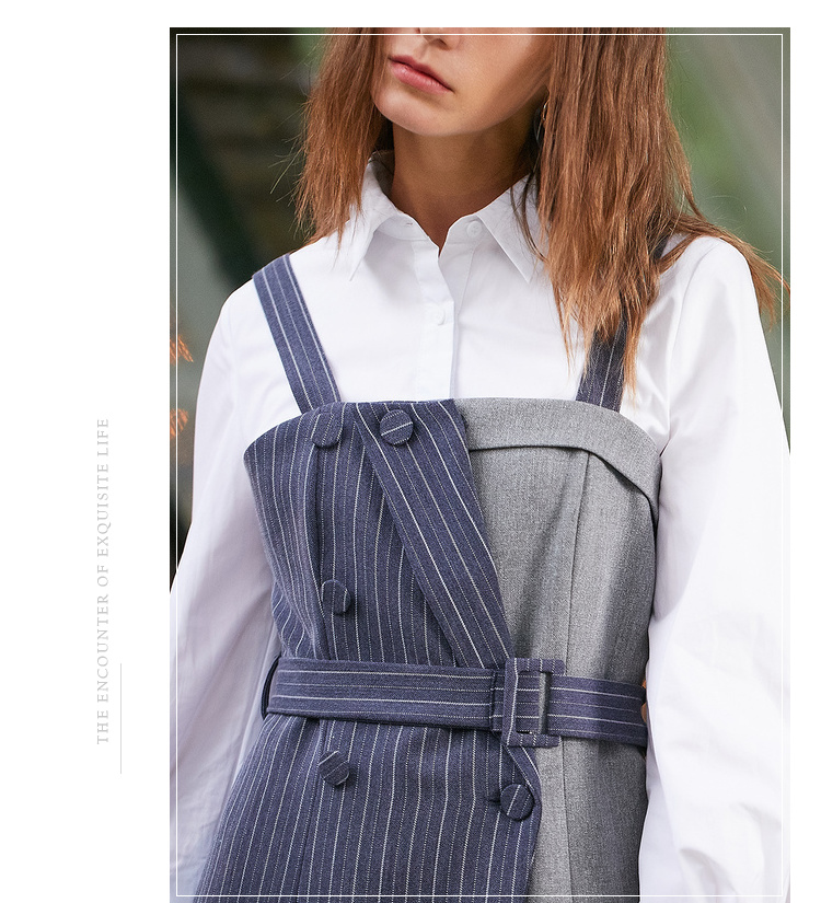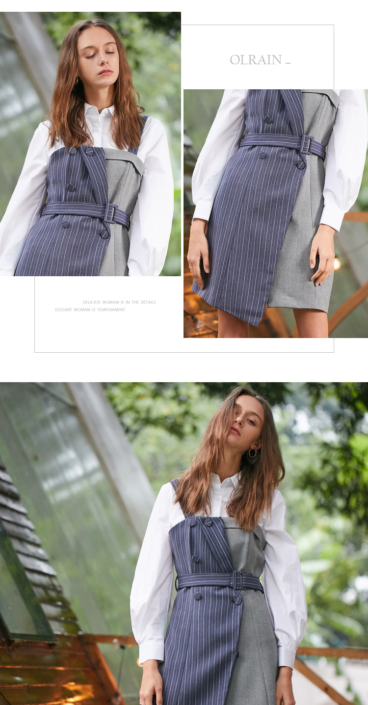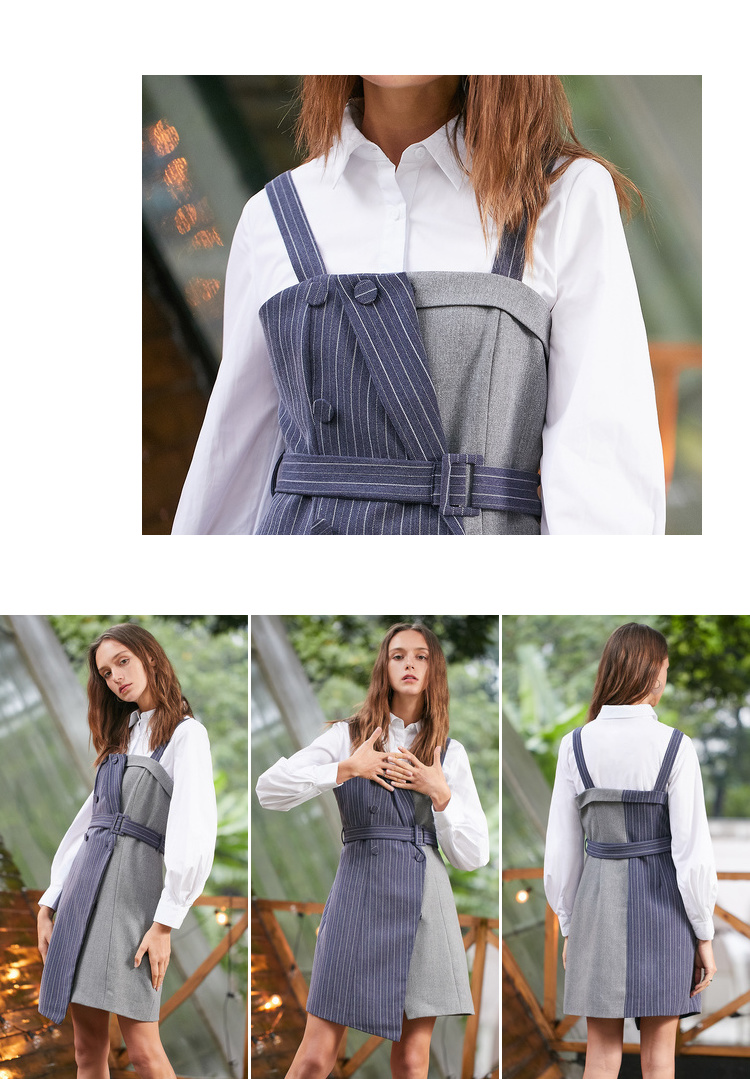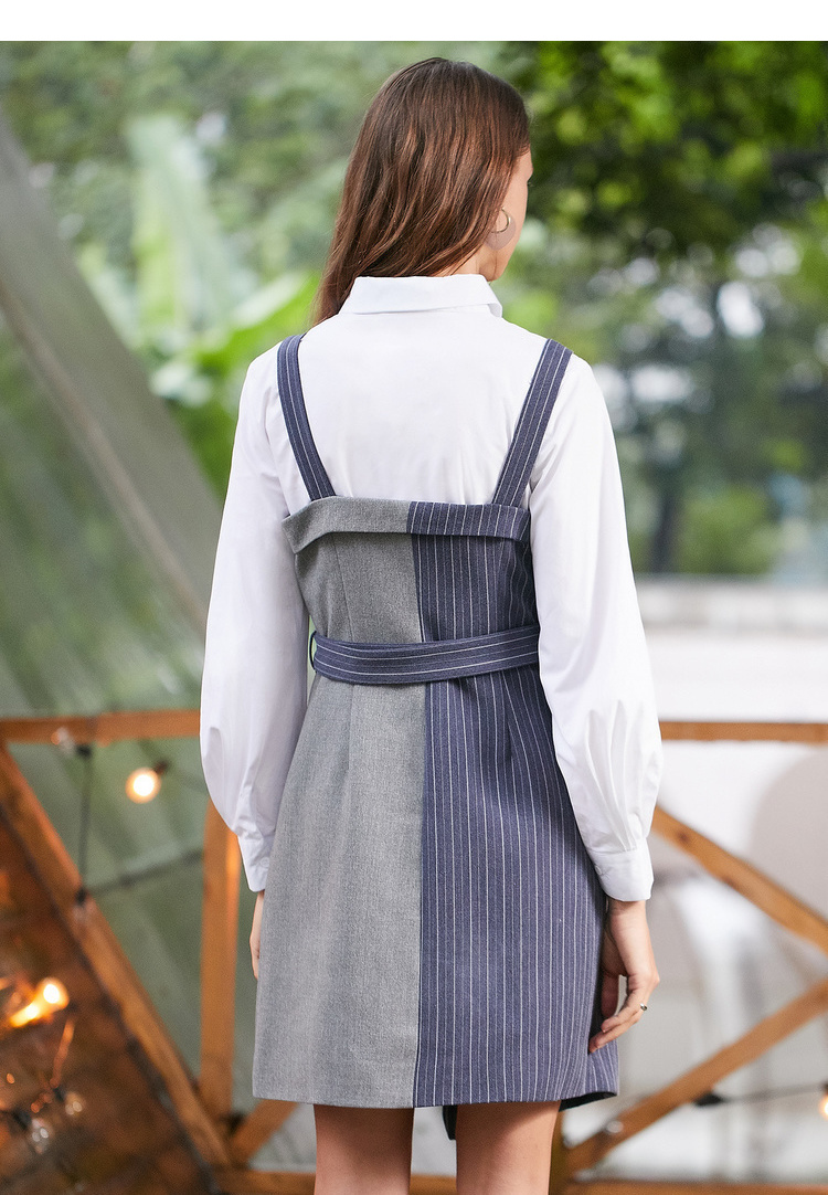 冬装女2018新款女装收腰显瘦衬衫+吊背带女裙两件套套装裙
