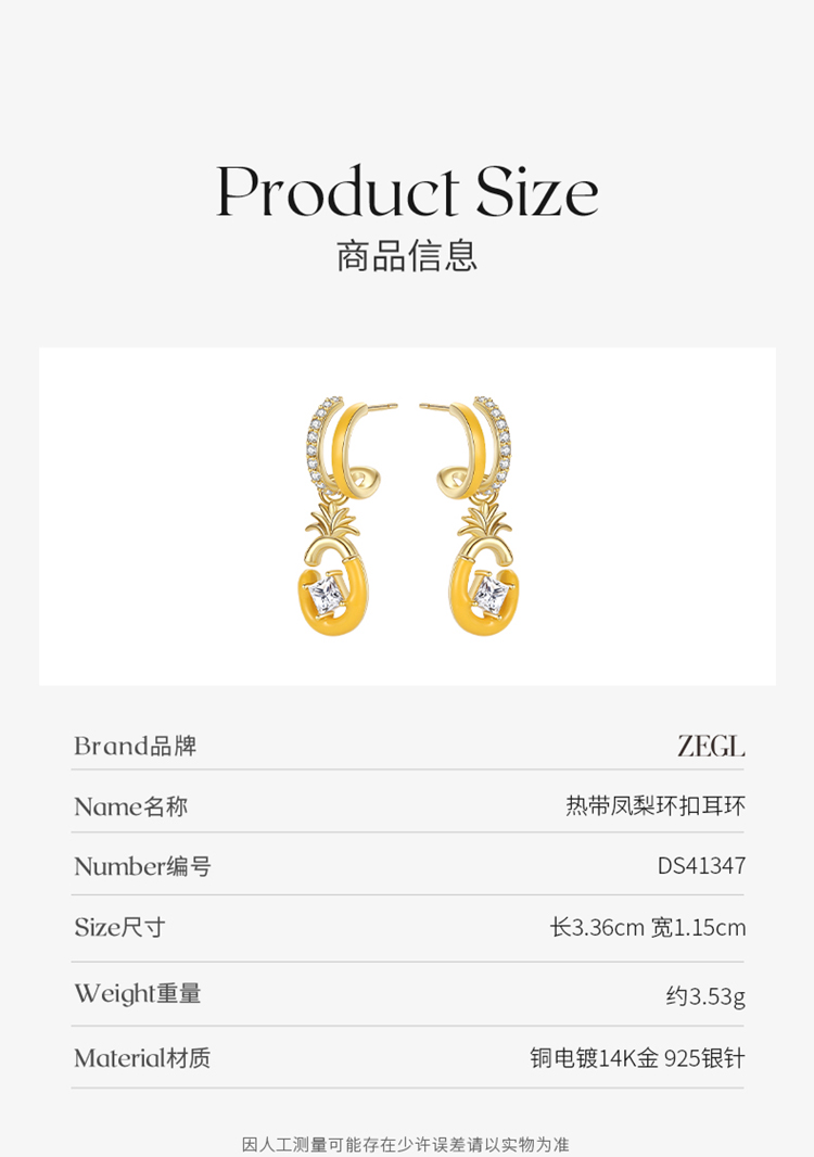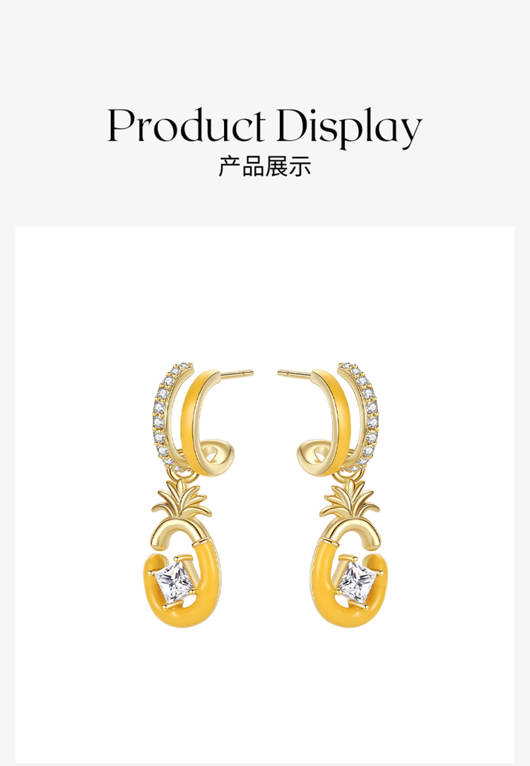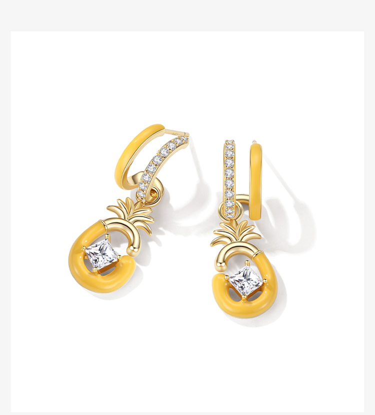 ZEGL设计师缤纷水果系列菠萝耳环女小众设计感耳钉银针夏天耳饰品