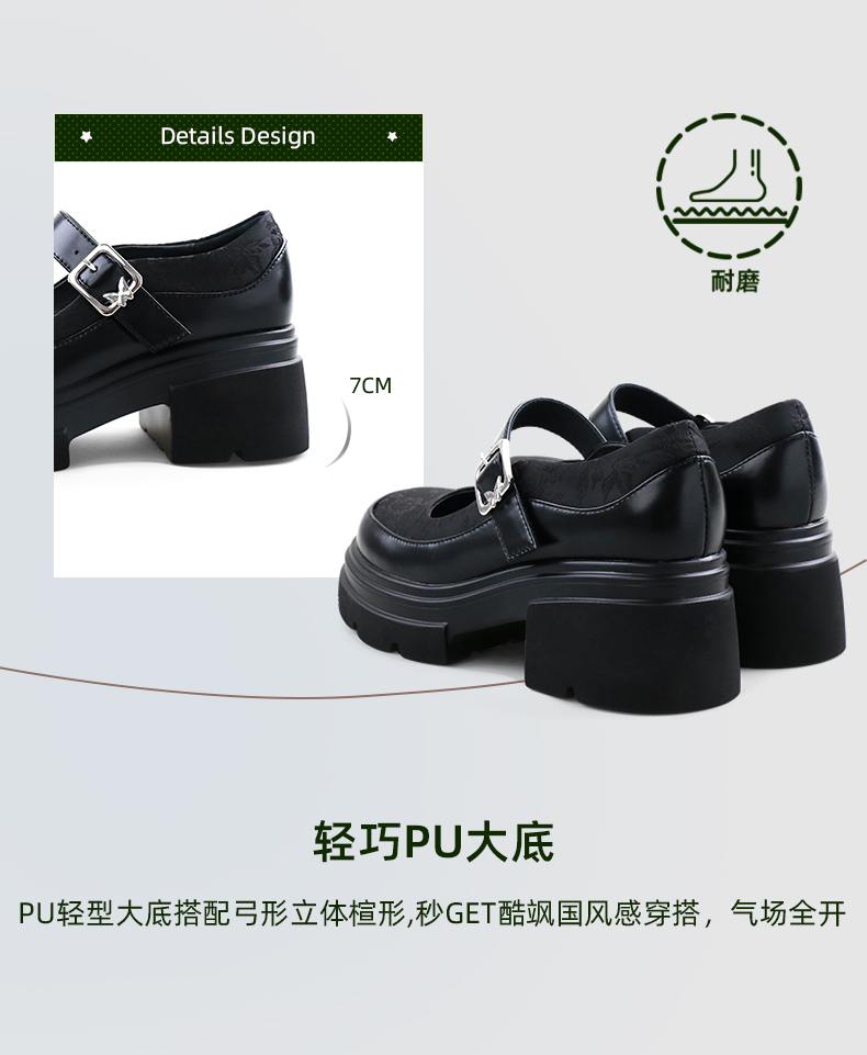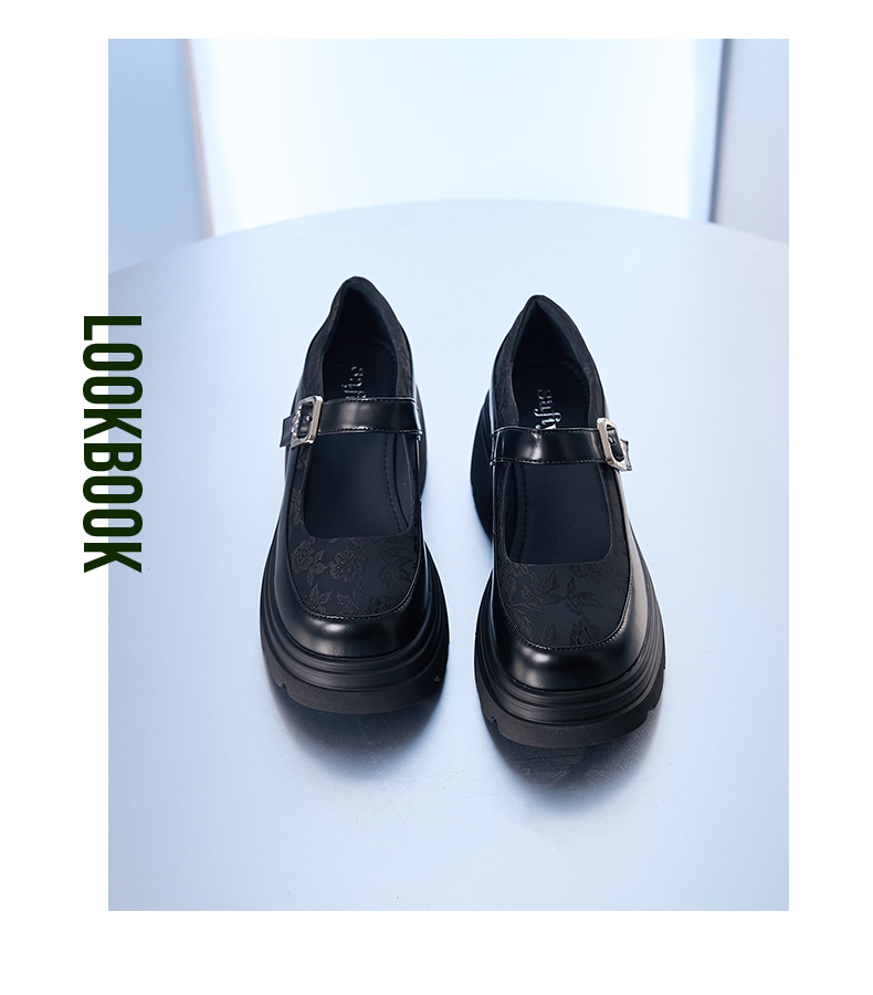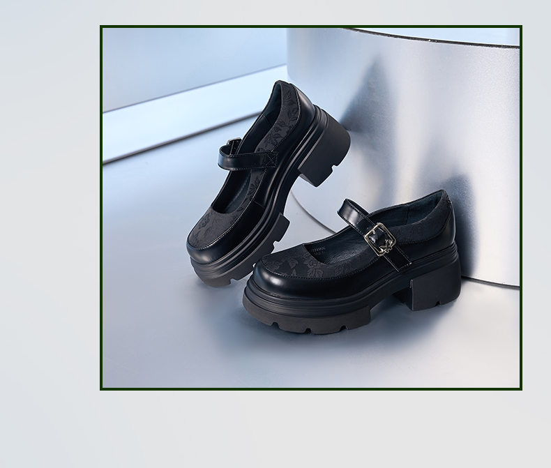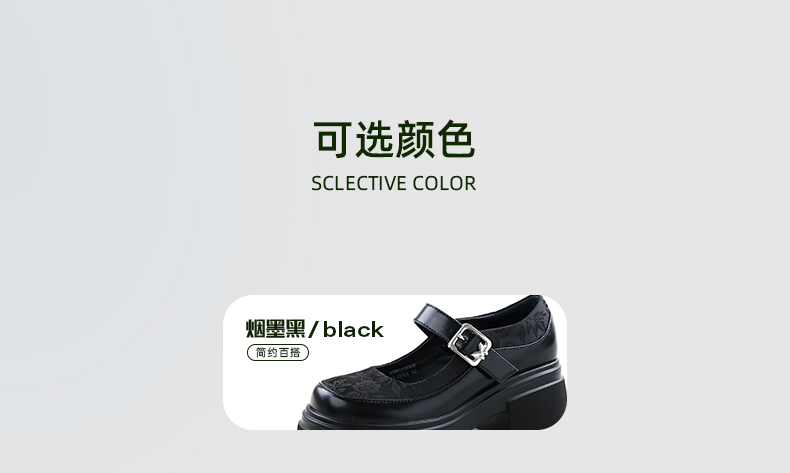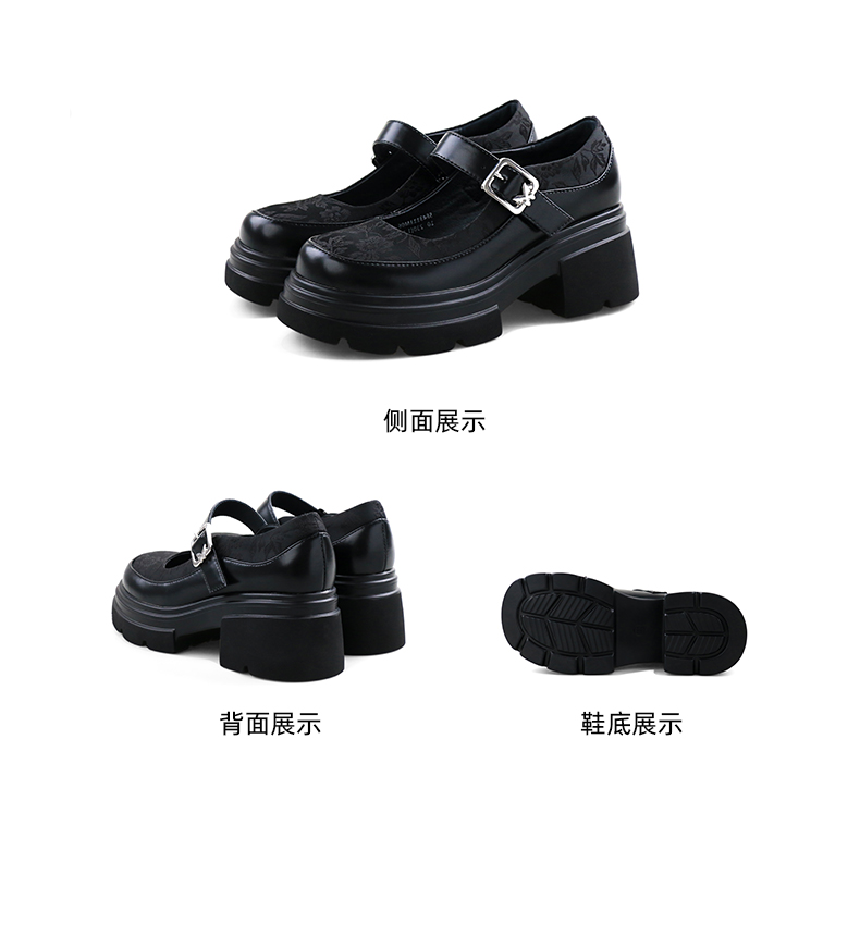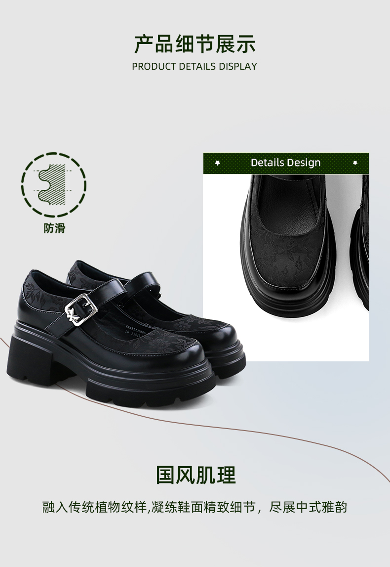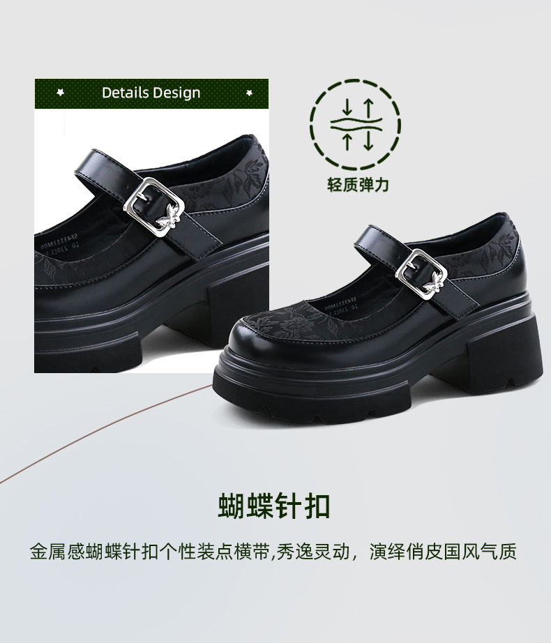 Safiya/索菲娅2024新中式国风厚底粗跟玛丽珍小皮鞋 SF43111406