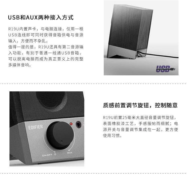 【会员价:88.32】漫步者(EDIFIER)R19U 木质纯音2.0迷你桌面音响 电脑音箱 黑色