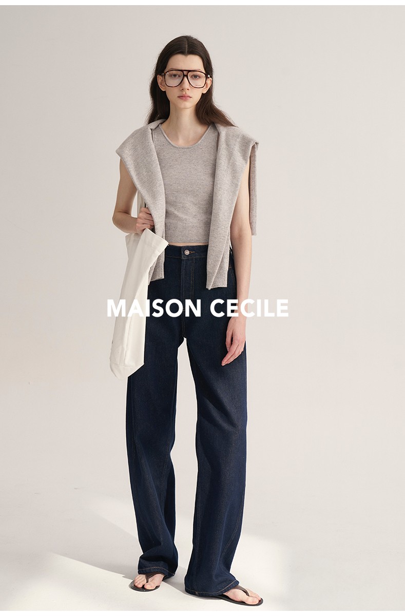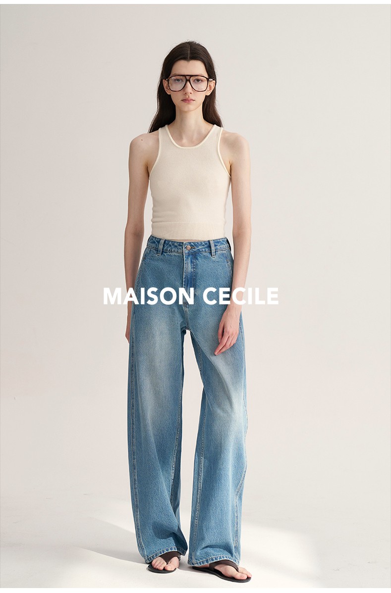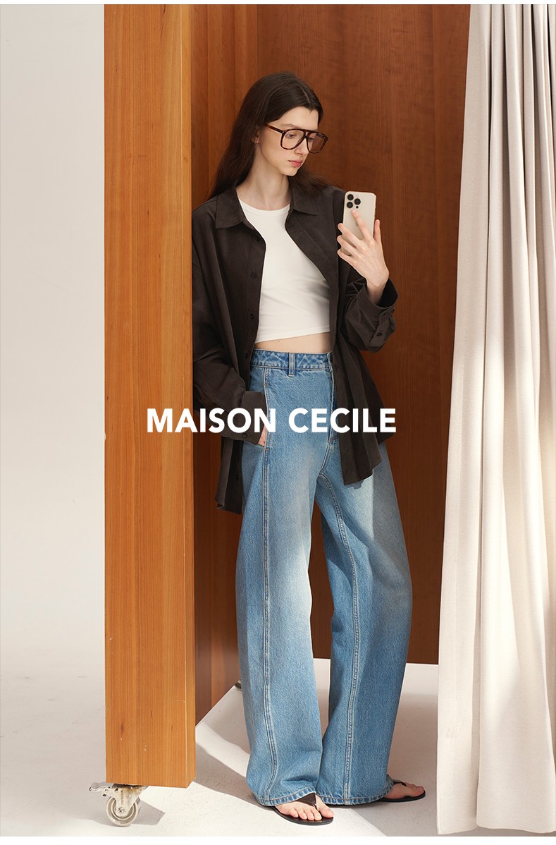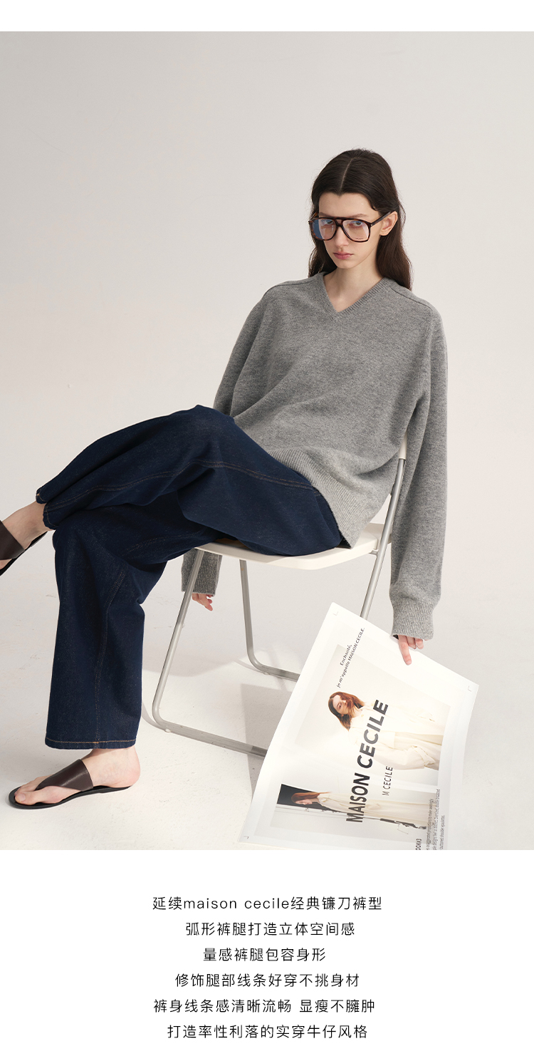 MAISON CECILE 本期bi入/两色经典宽松随性复古显瘦镰刀牛仔裤