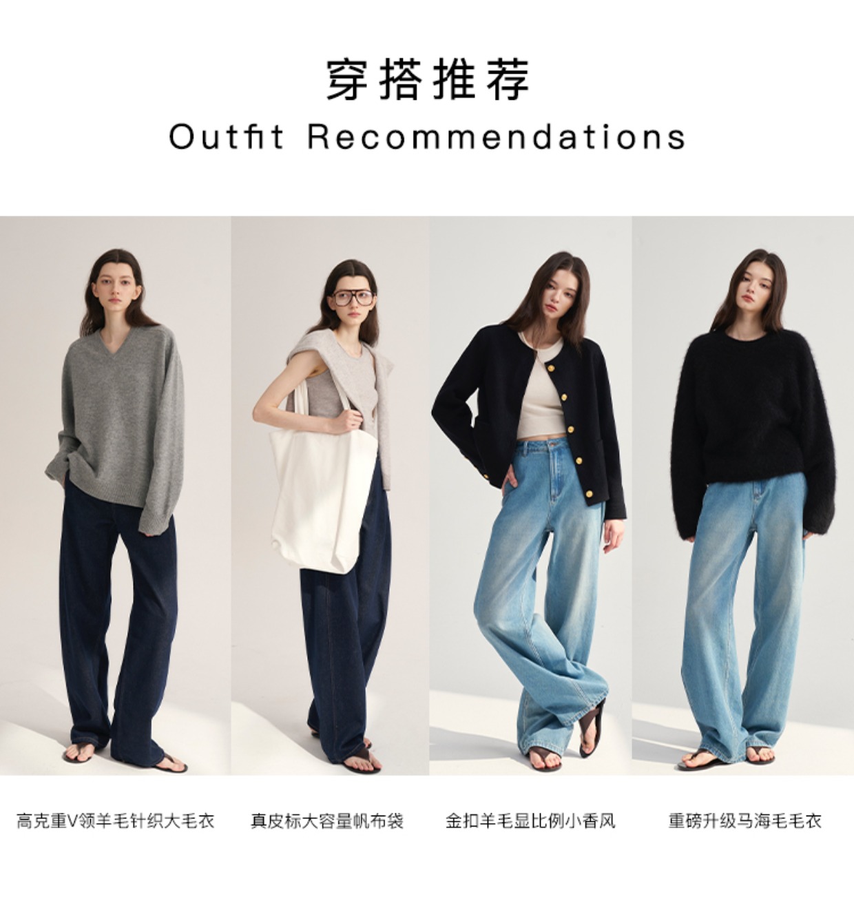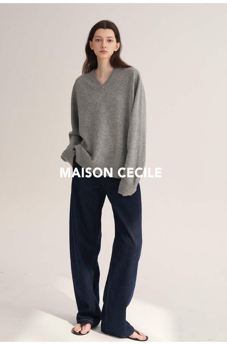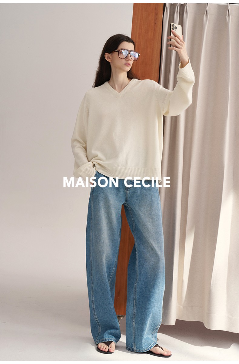 MAISON CECILE 本期bi入/两色经典宽松随性复古显瘦镰刀牛仔裤