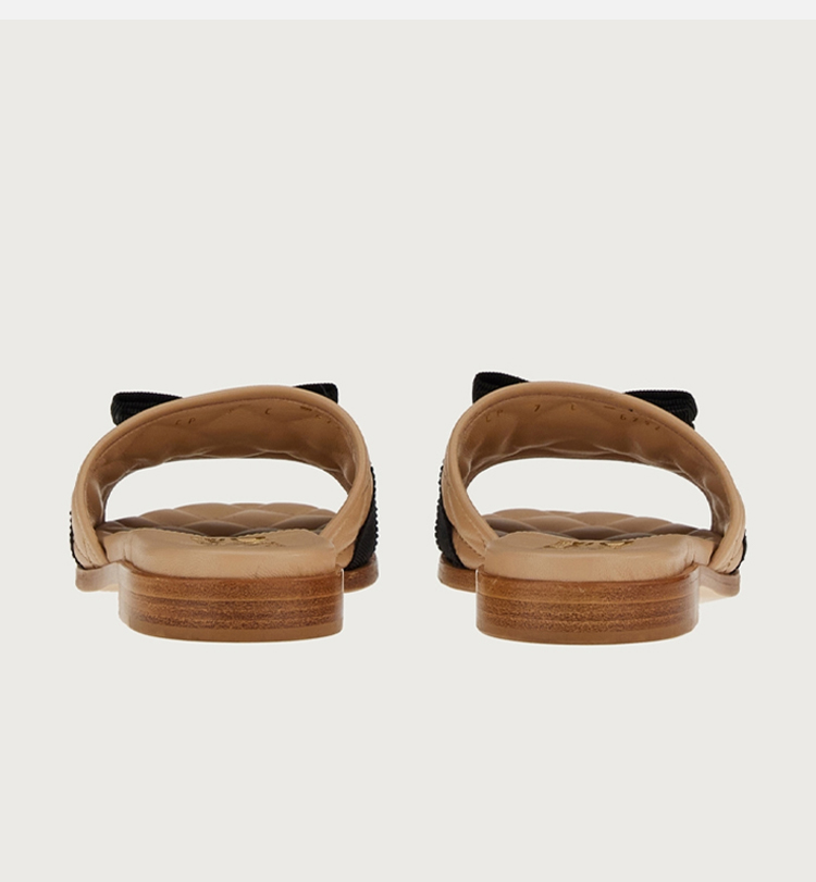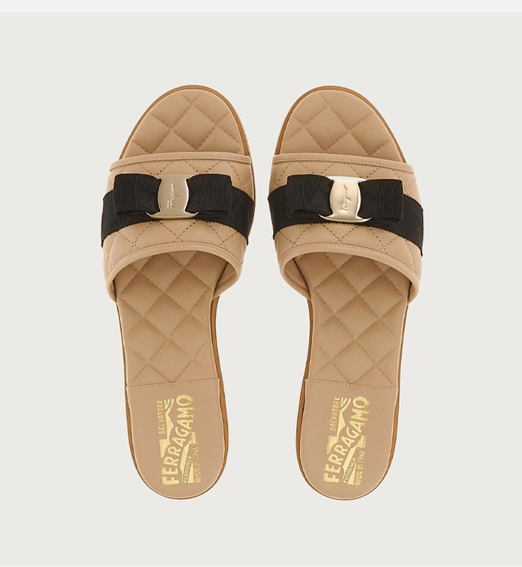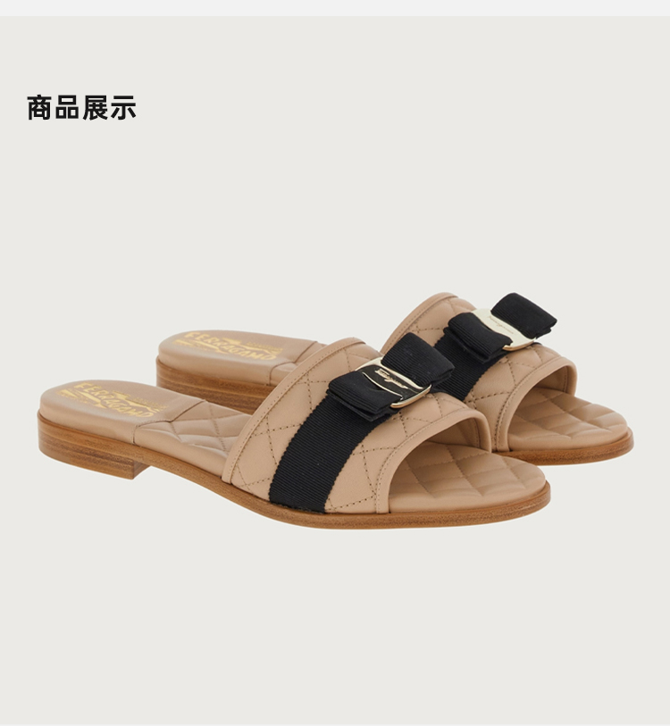FERRAGAMO 菲拉格慕 女士皮革 VARA 蝴蝶结拖鞋 卡其色 754668