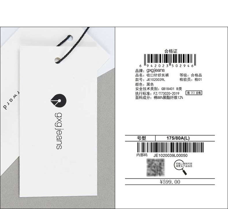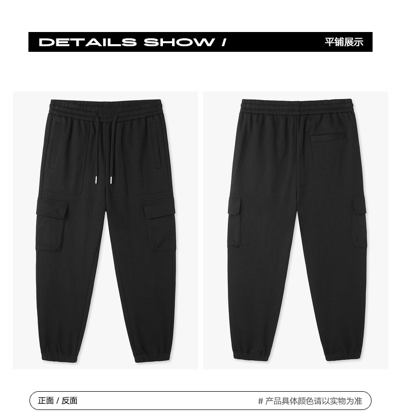 gxgjeans男装春季黑色贴袋工装束脚休闲长裤