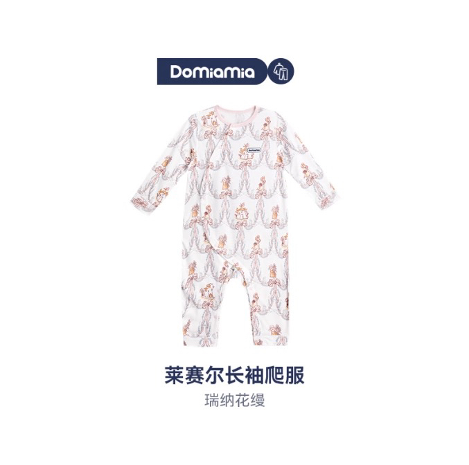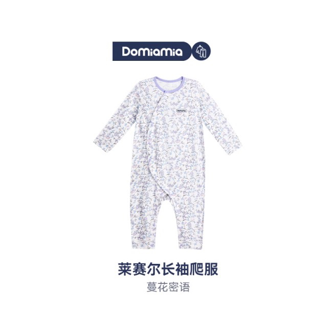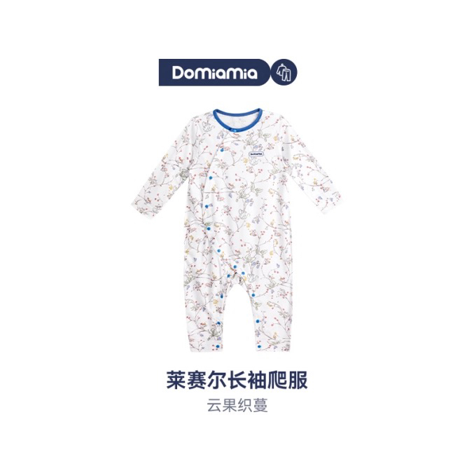 Domiamia 女宝宝针织莱赛尔长袖斜开爬服 纯棉家居保暖服