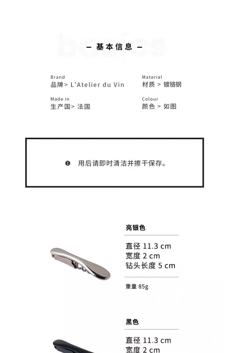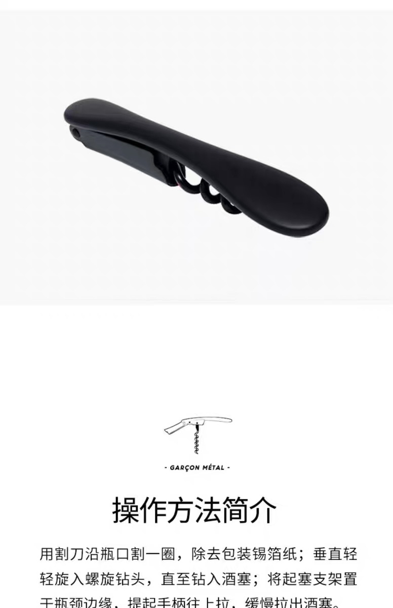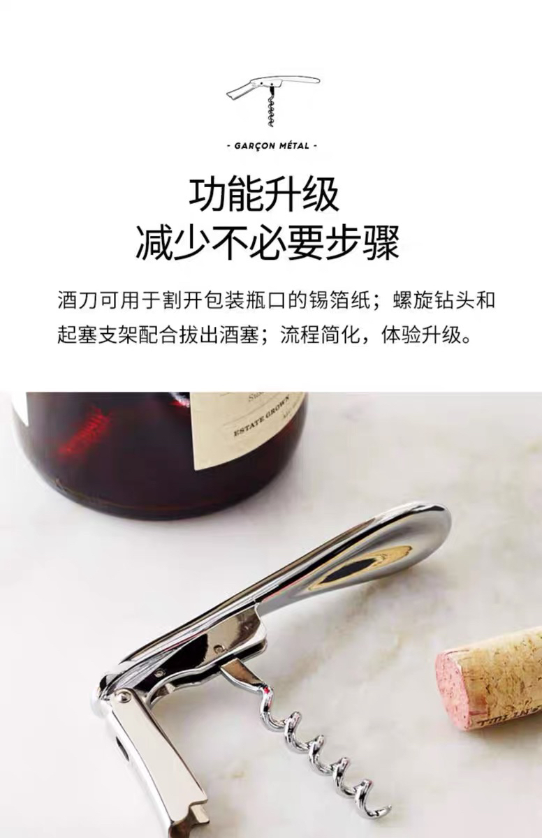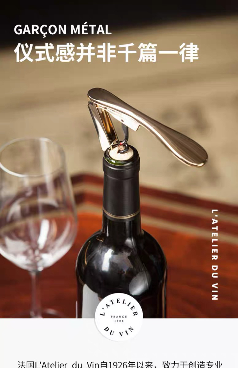 法国L'Atelier du Vin复古不锈钢红酒开瓶器 便携葡萄酒开酒工具