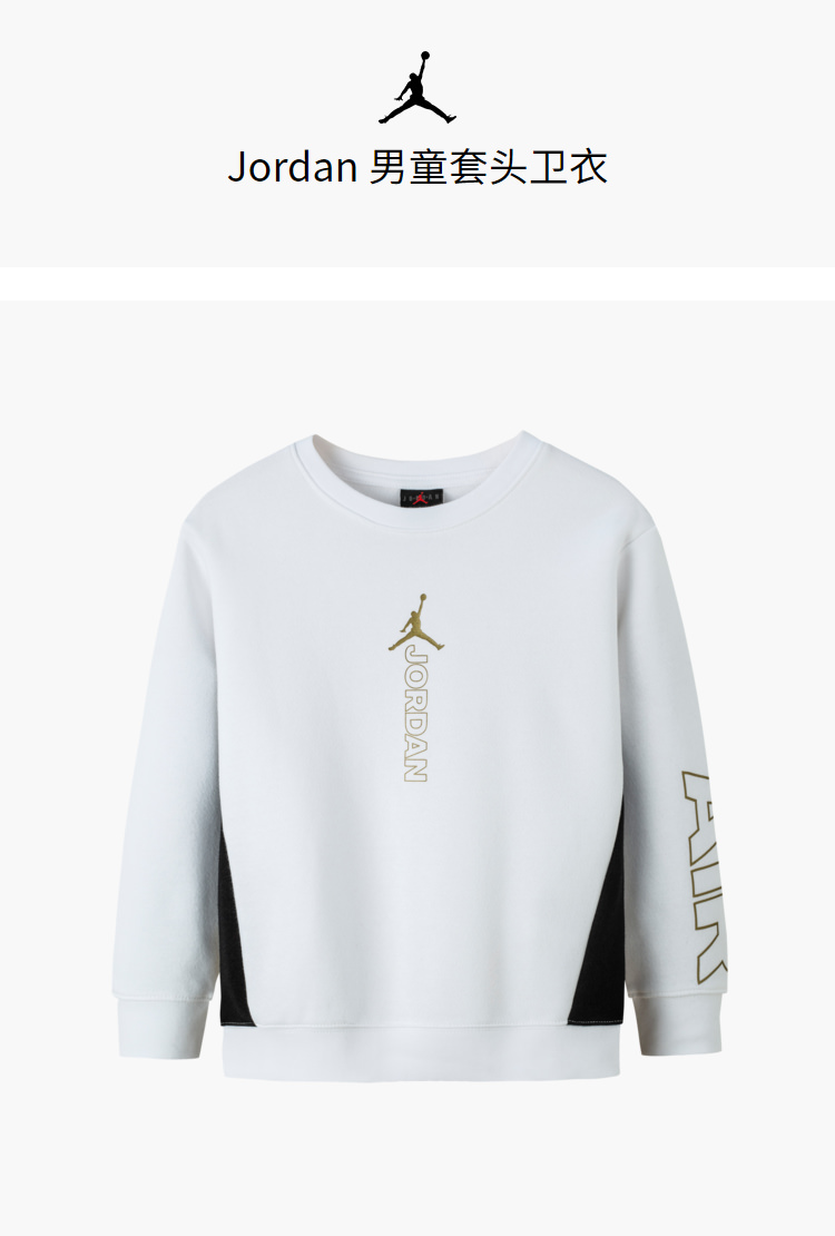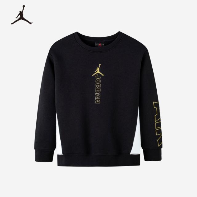 Air Jordan耐克童装男童加绒圆领卫衣22冬季新款JD2242047