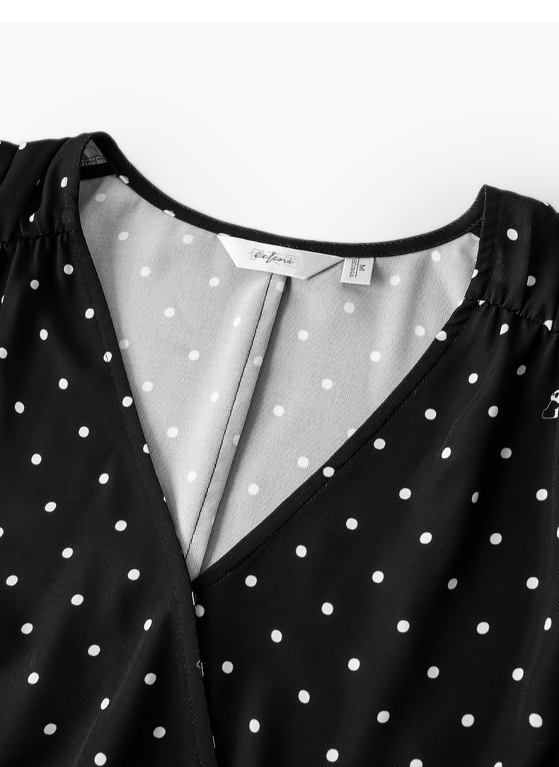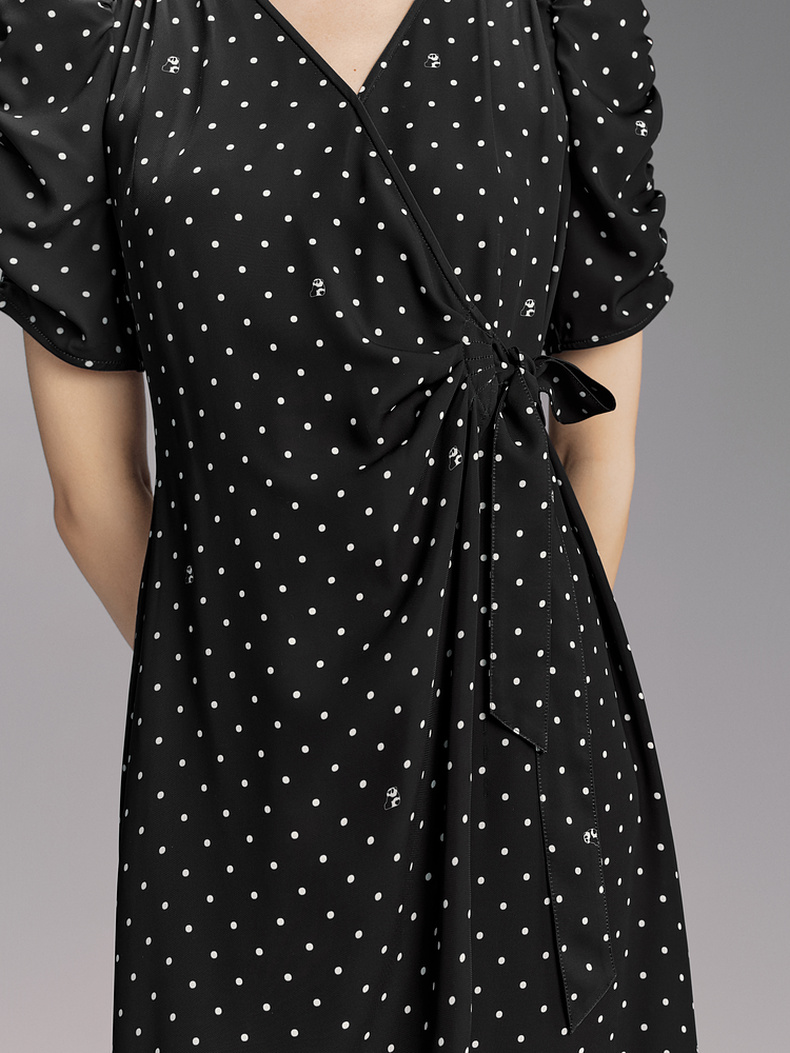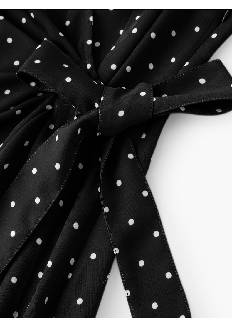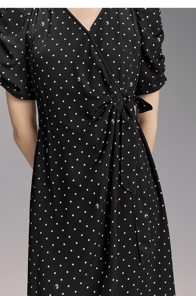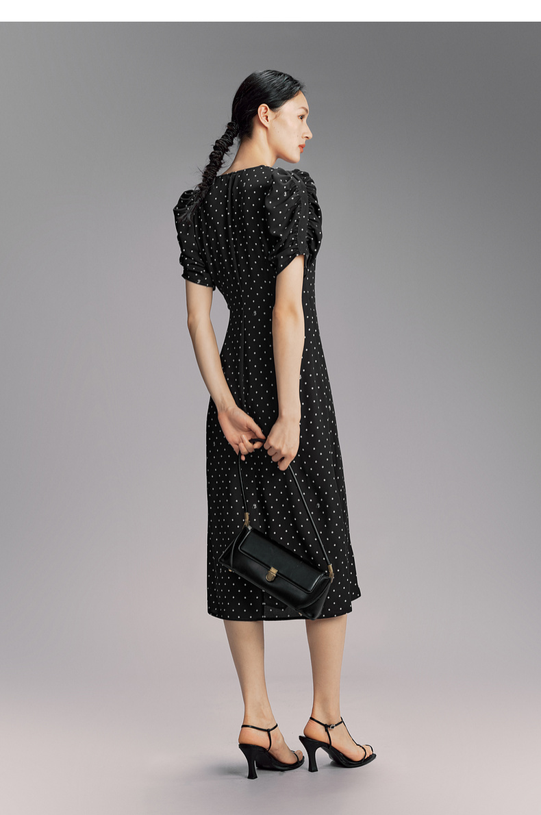 【商场同款】伊芙丽春秋法式波点泡泡袖显瘦围裹式连衣裙1F7291004