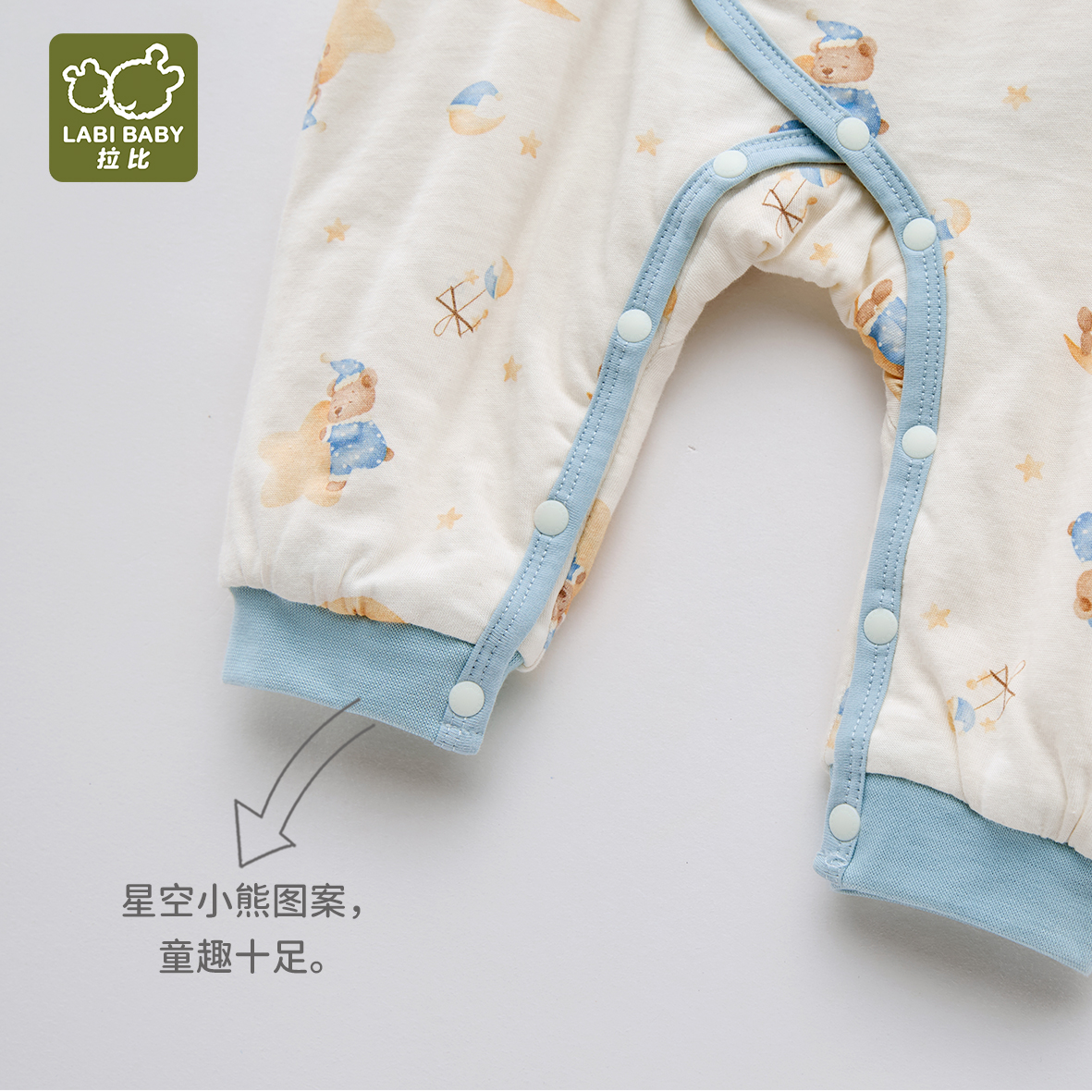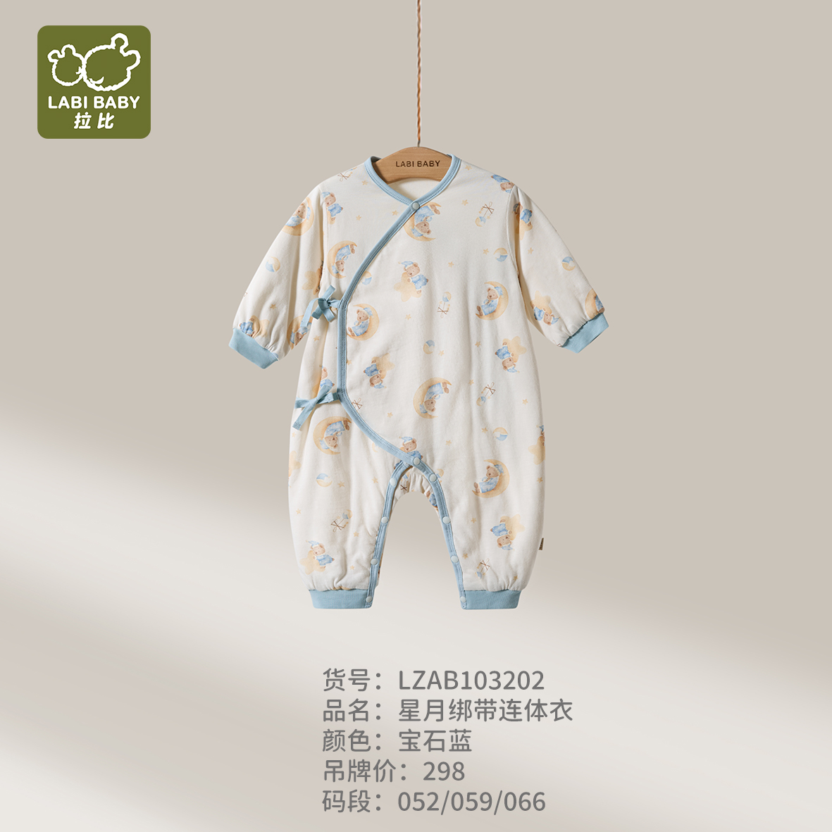 拉比童衣J6-1星月绑带连体衣蓝LZAB103202